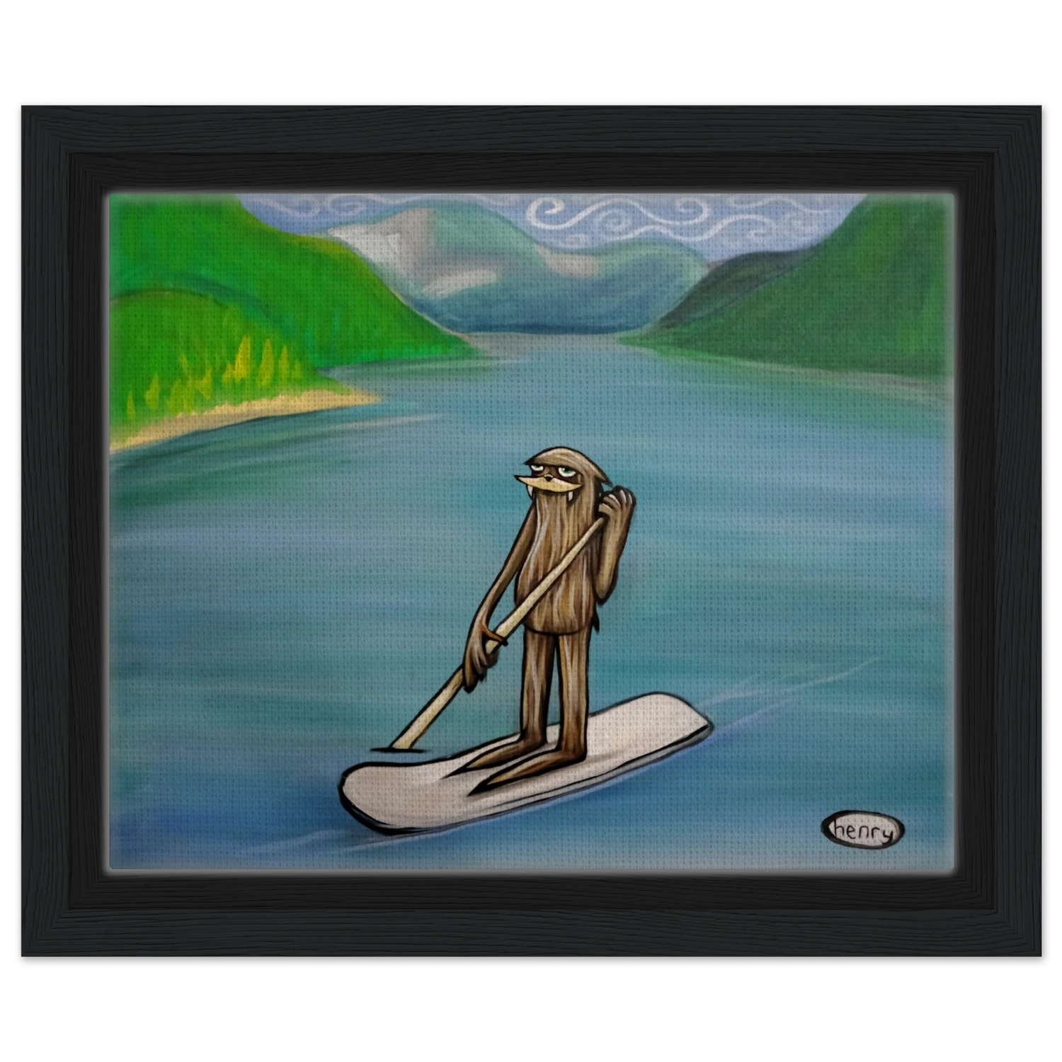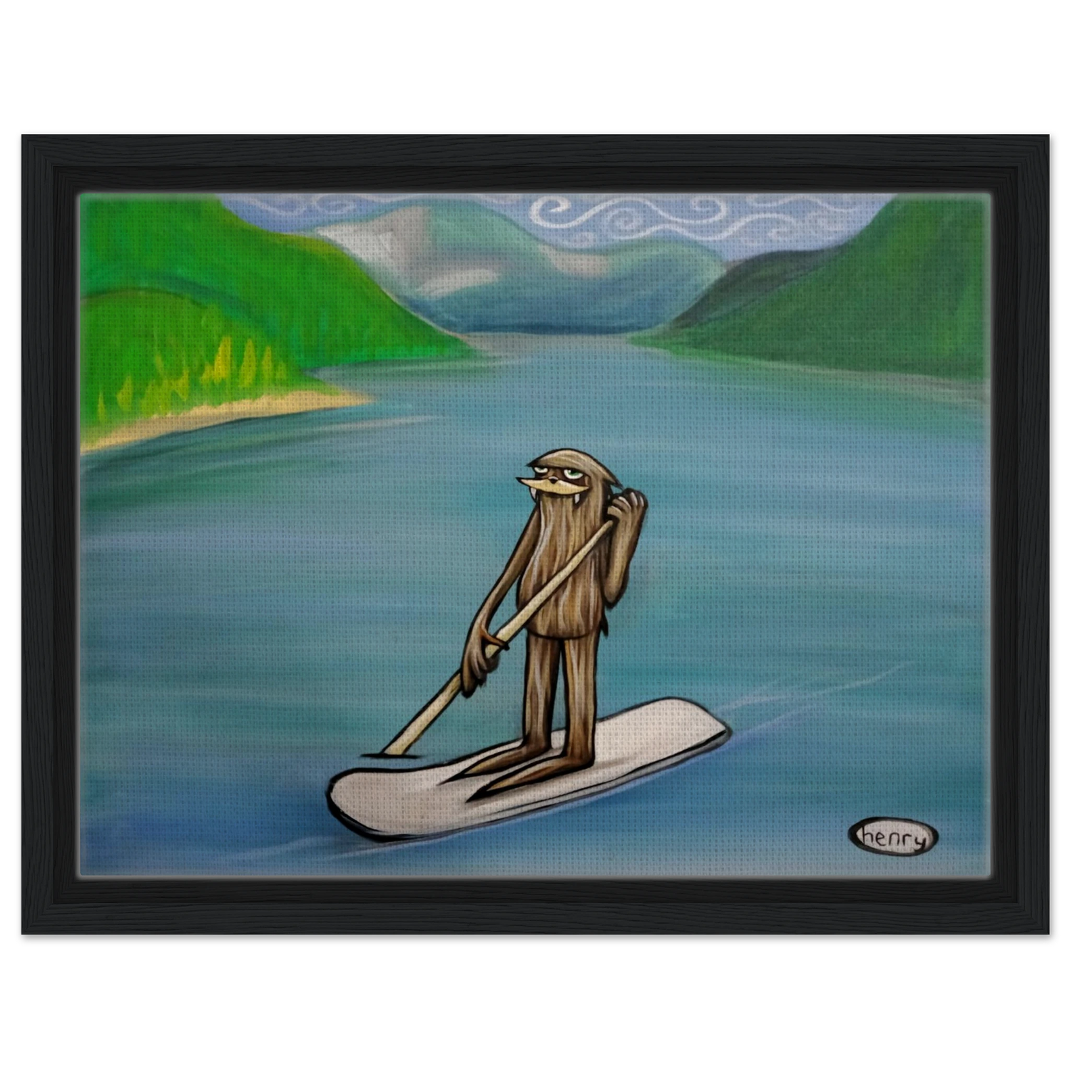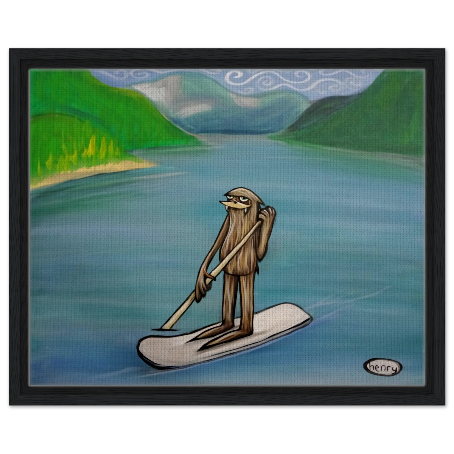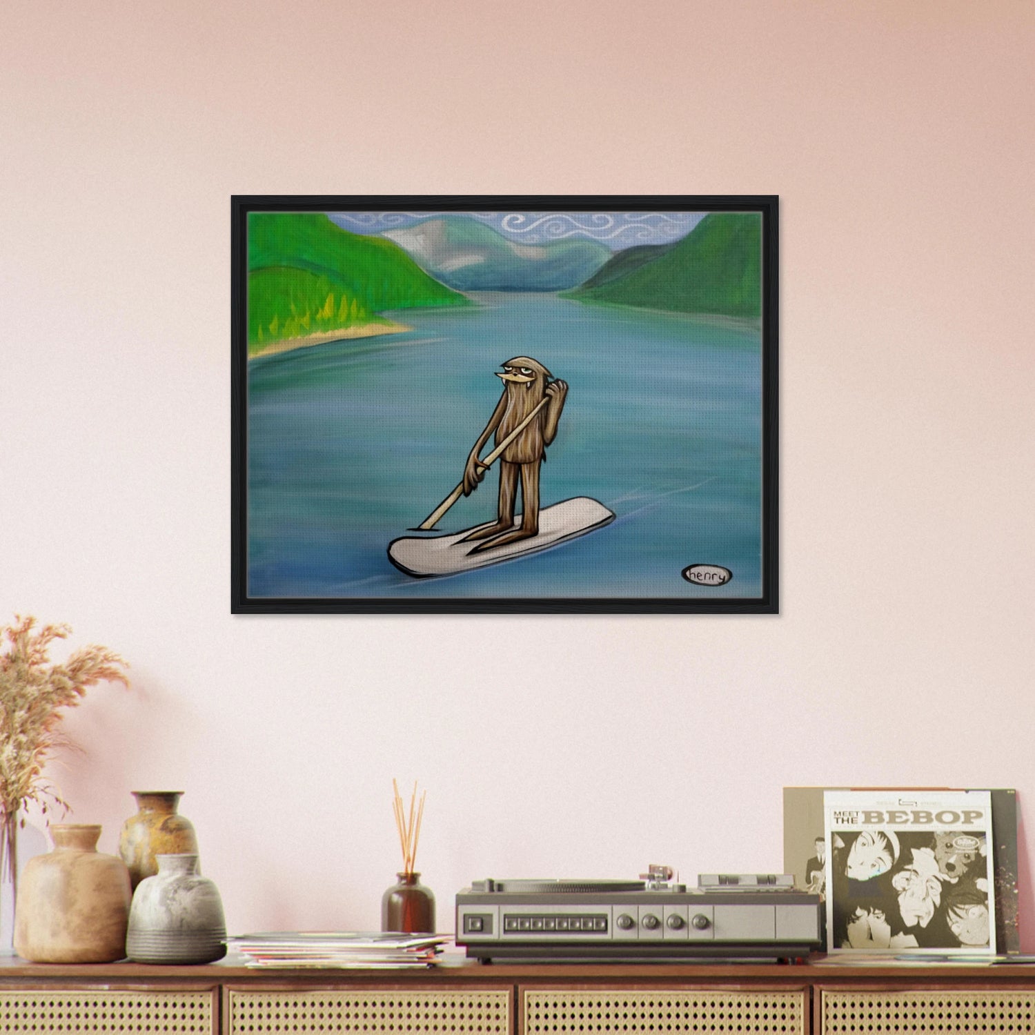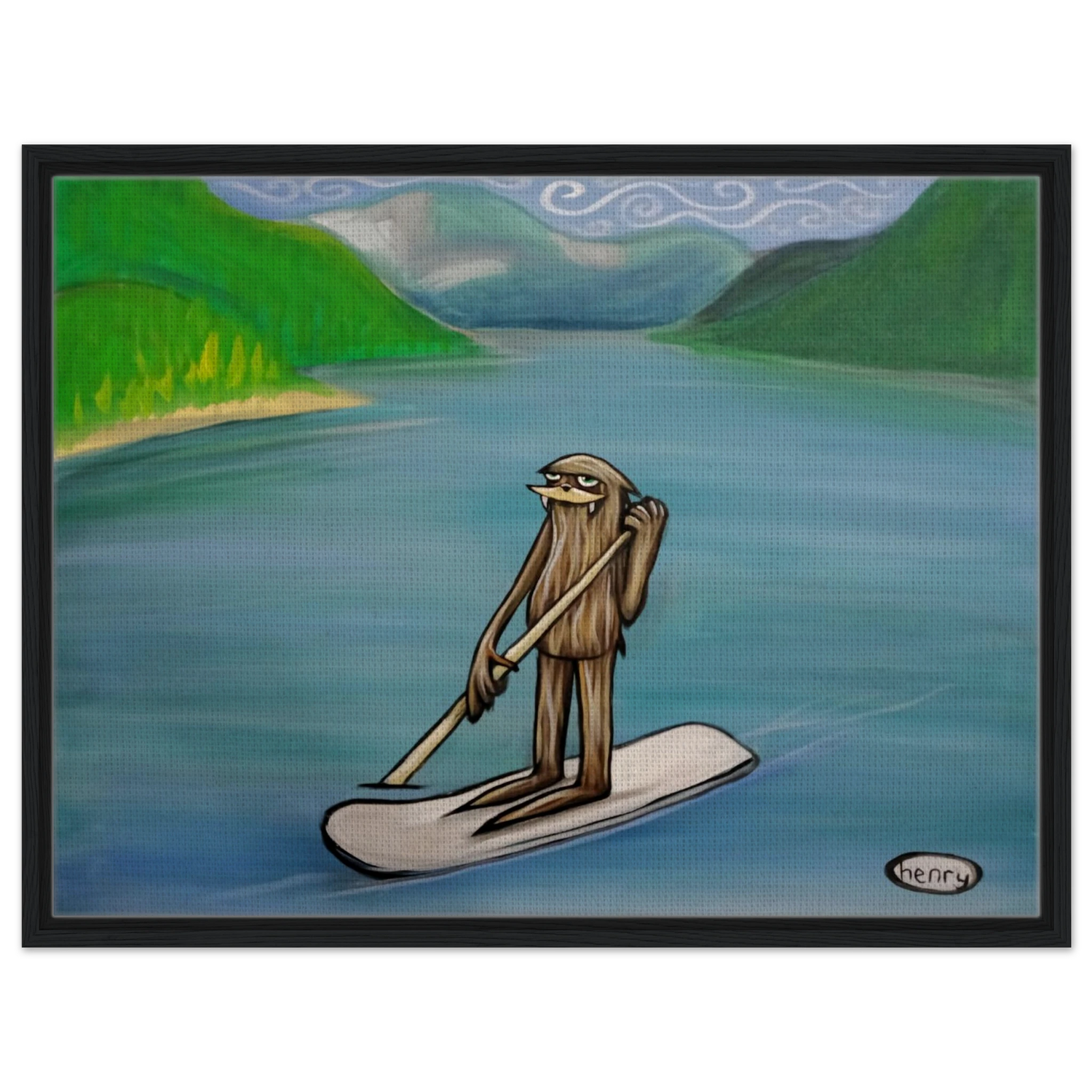 Sasquatch Paddleboarding - Framed Canvas Print - is backordered and will ship as soon as it is back in stock.