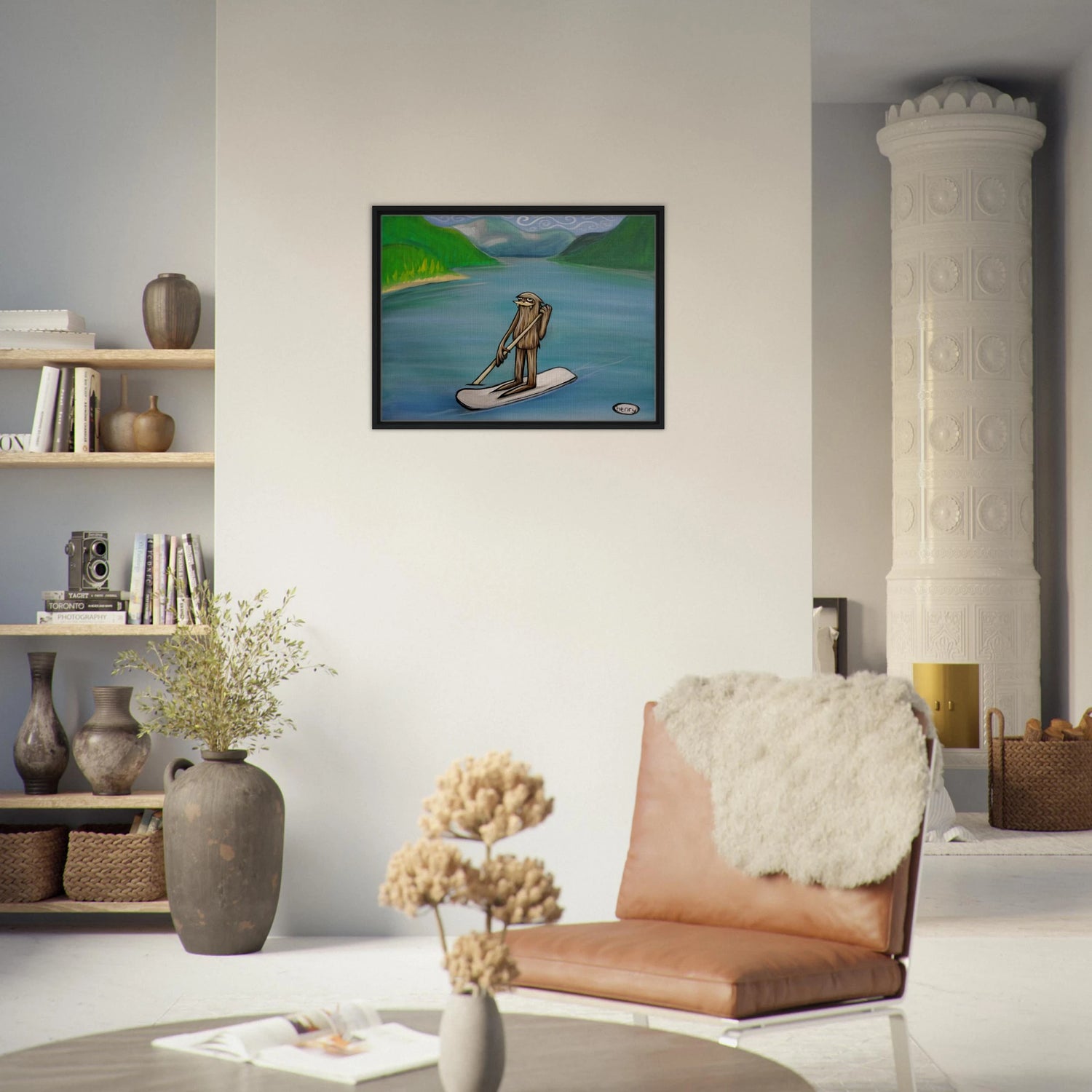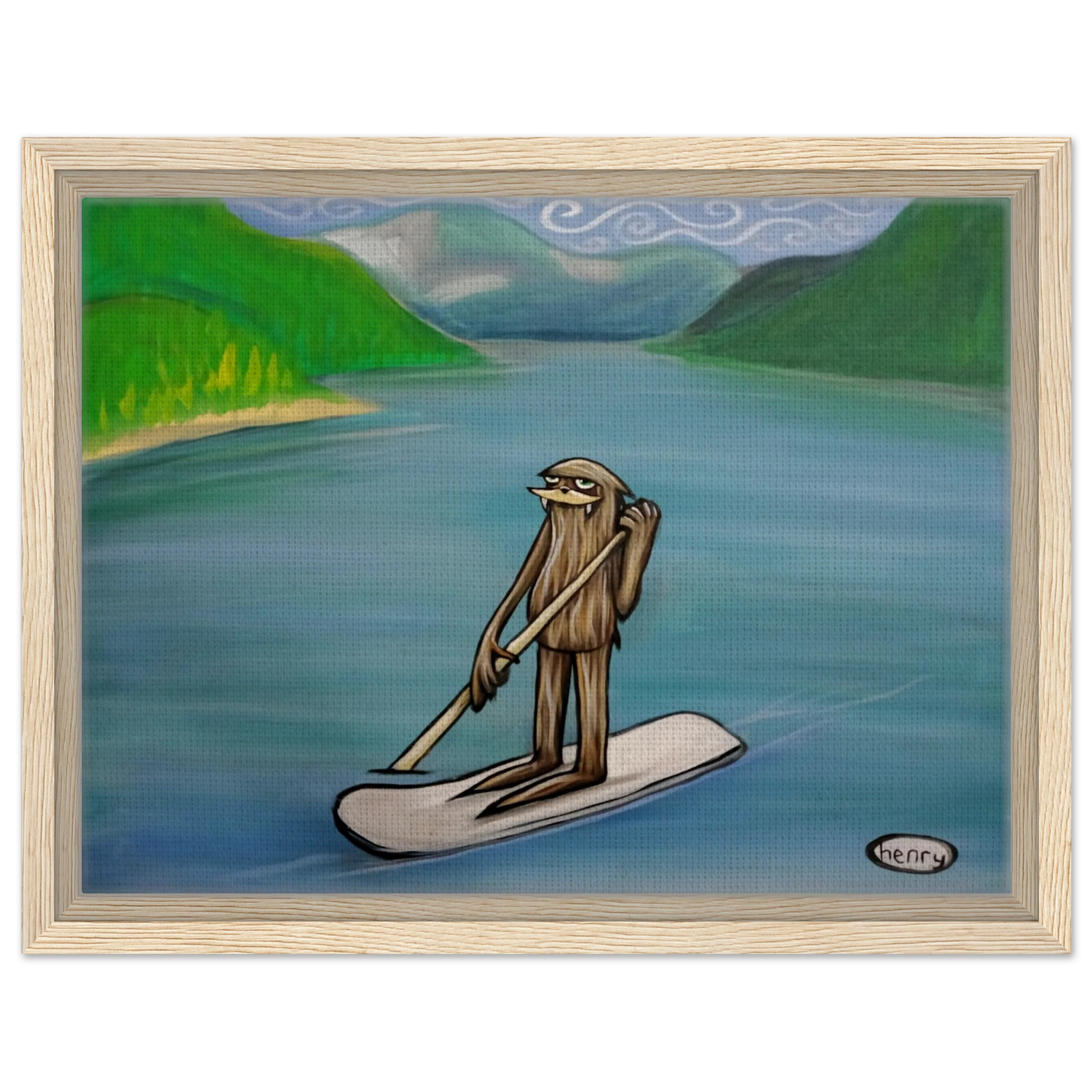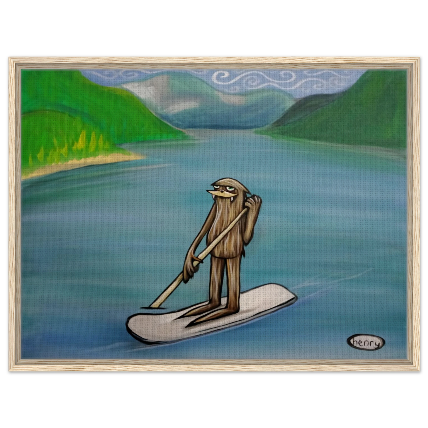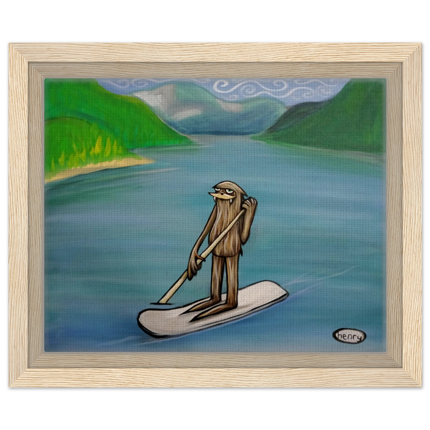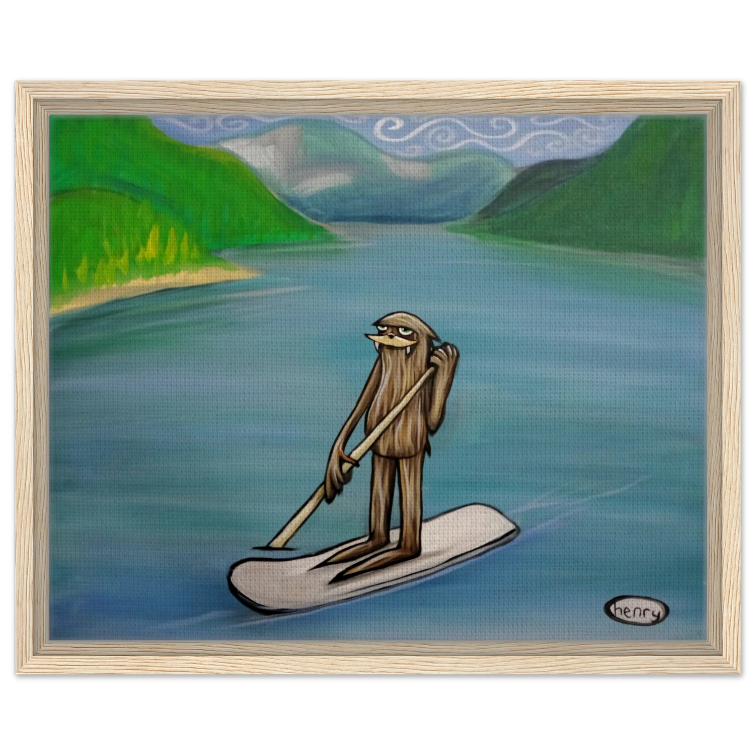 Sasquatch Paddleboarding - Framed Canvas Print - is backordered and will ship as soon as it is back in stock.