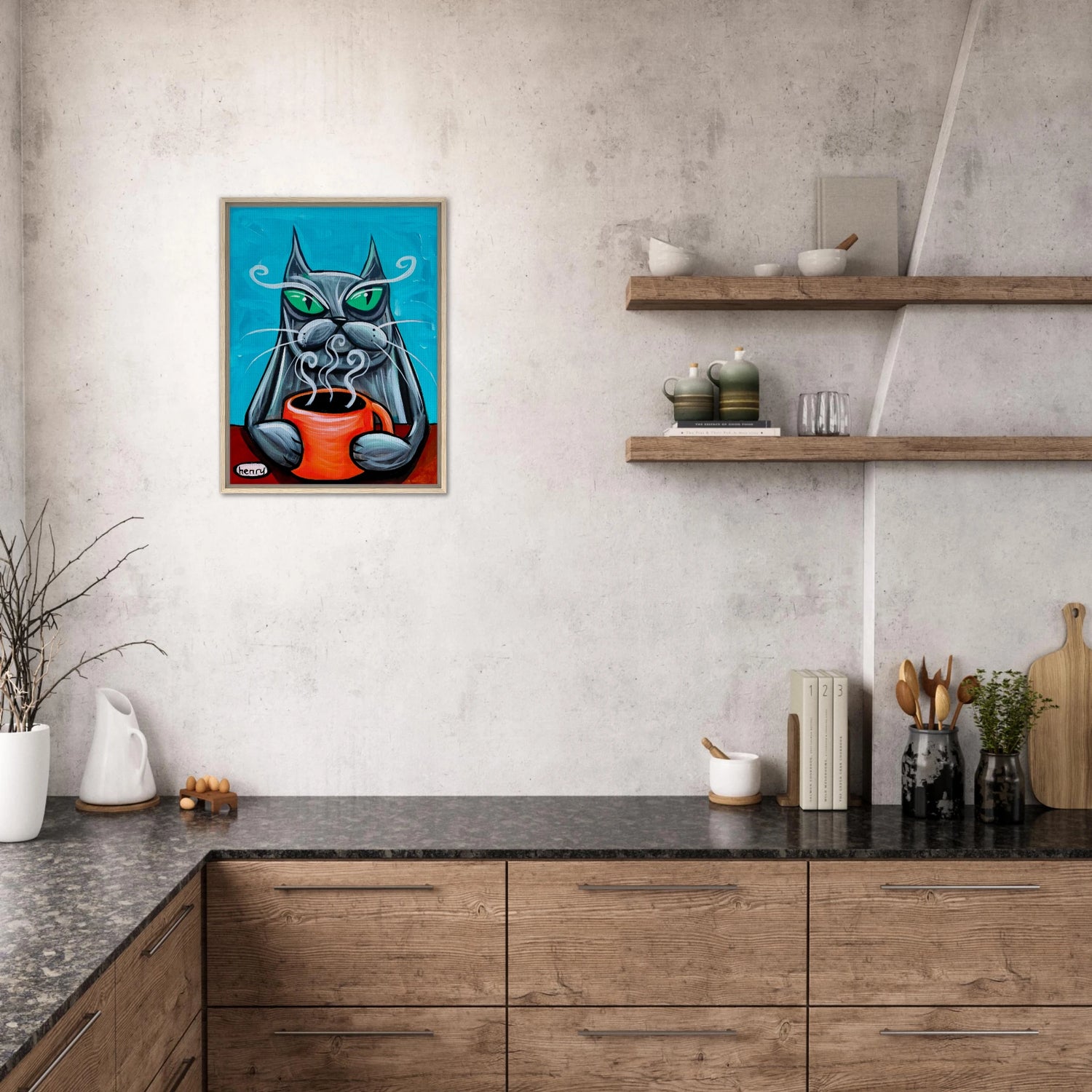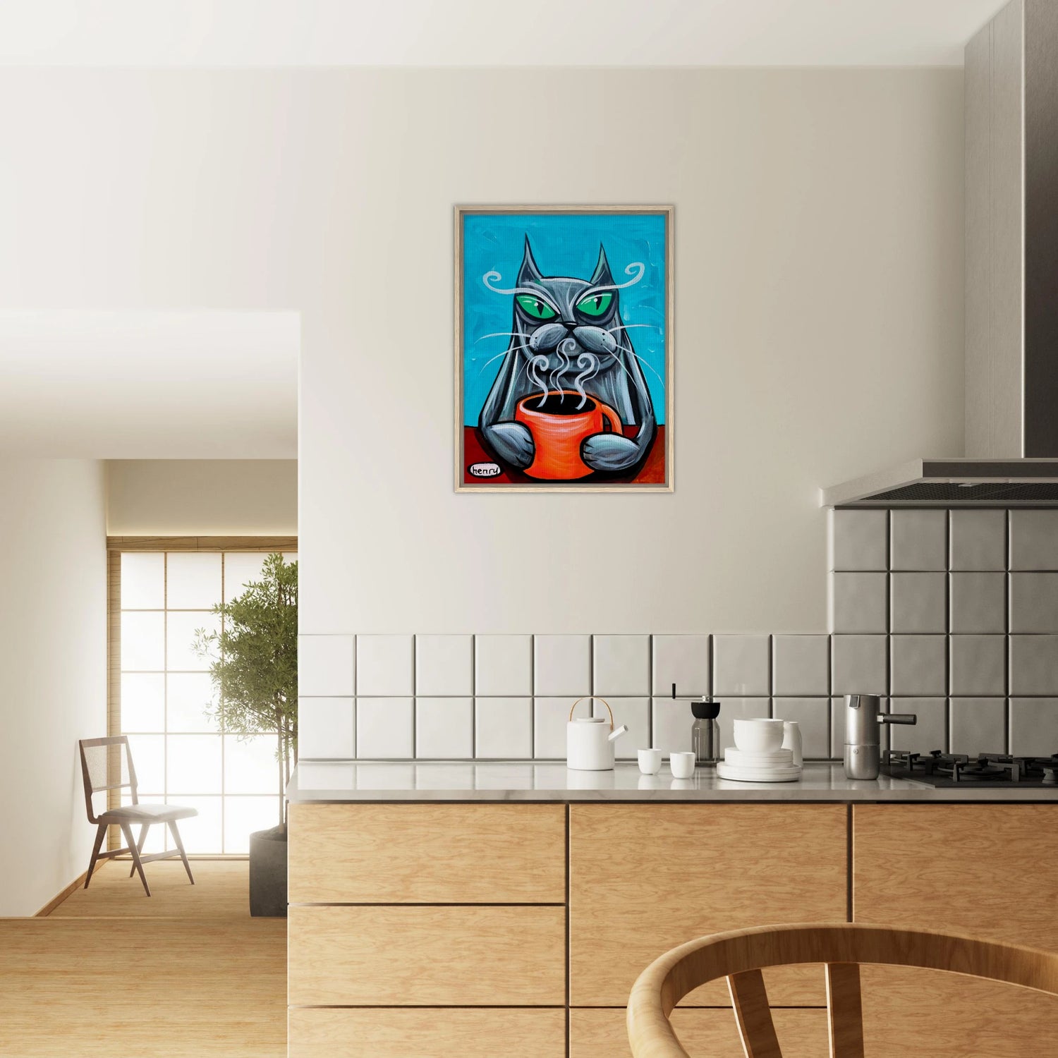 Old Coffee Cat - Framed Canvas Print - is backordered and will ship as soon as it is back in stock.