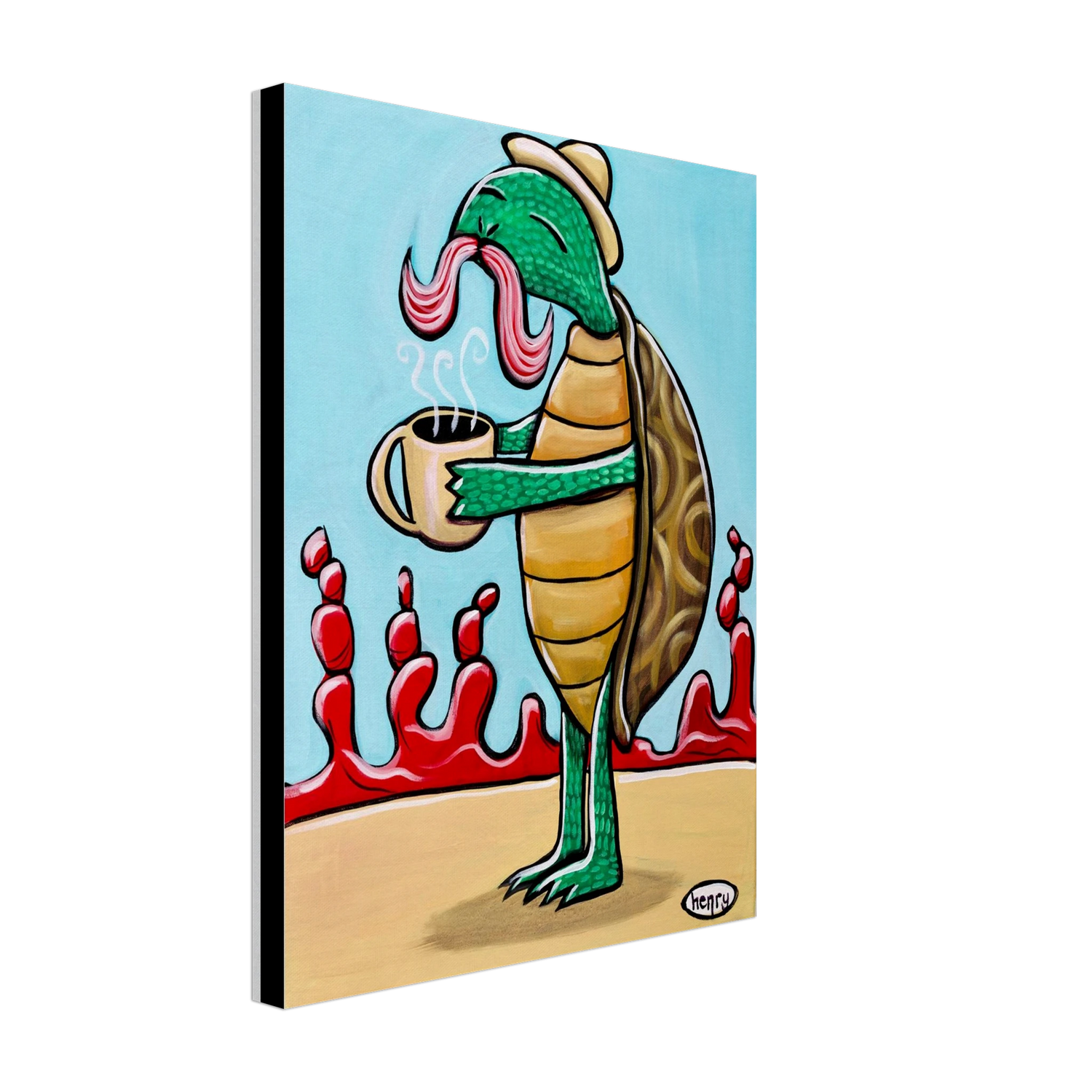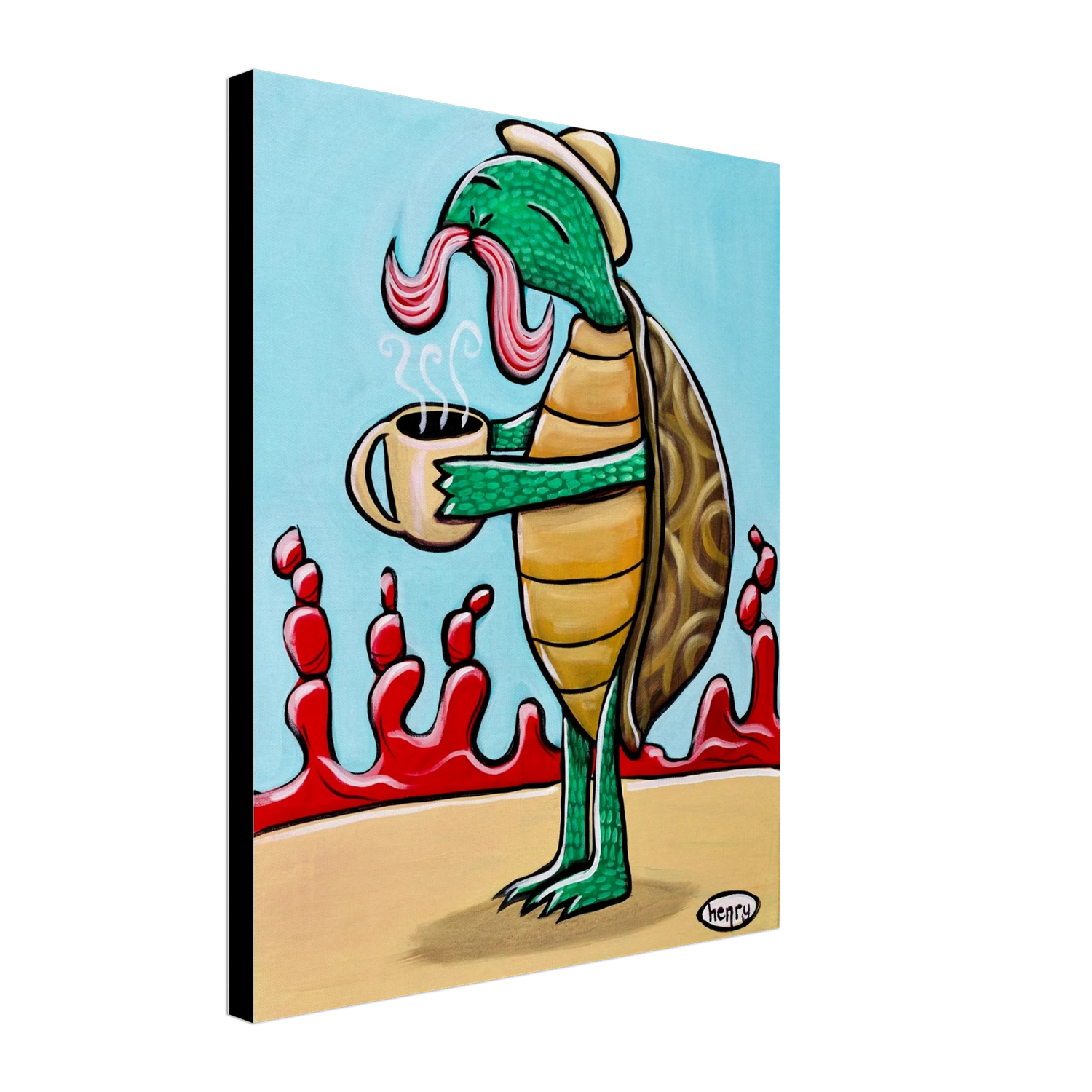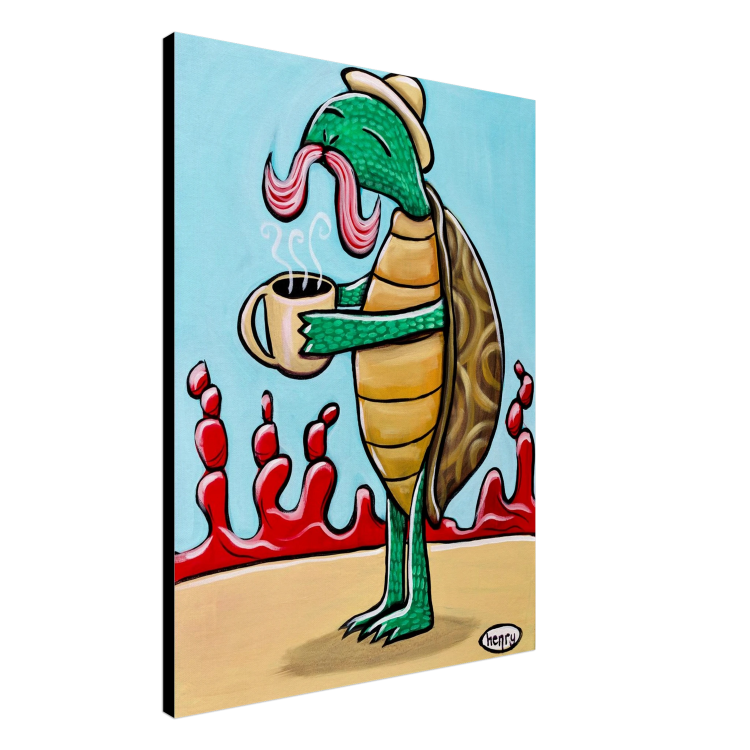 Turtle with Coffee - Canvas Print - is backordered and will ship as soon as it is back in stock.