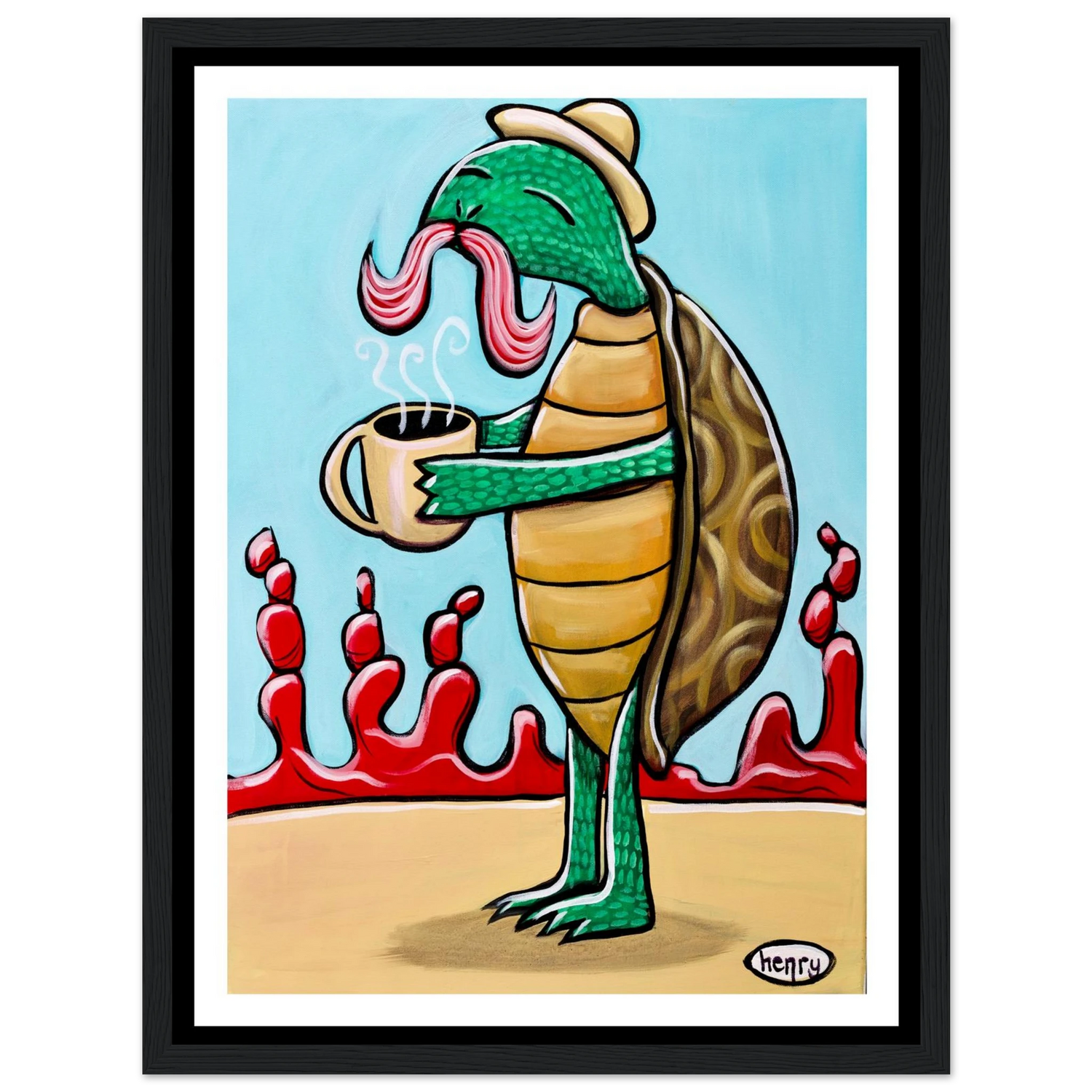 Turtle with Coffee - Mounted Framed Poster - is backordered and will ship as soon as it is back in stock.
