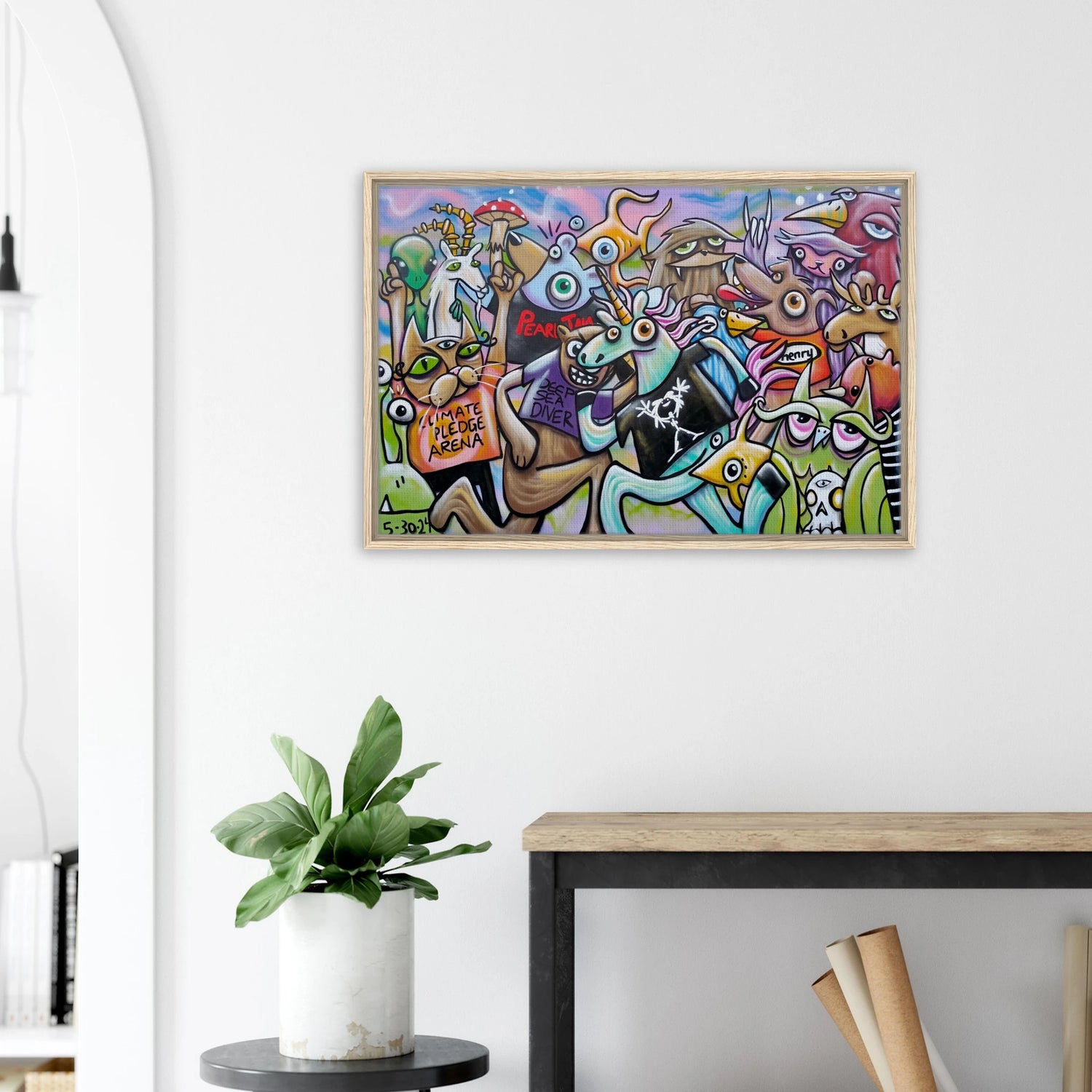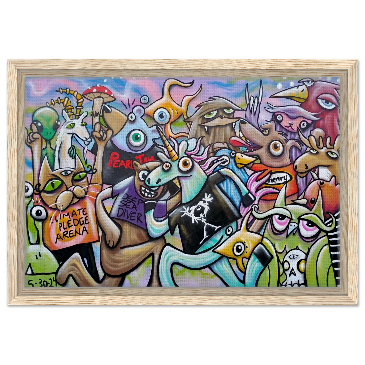 The second of two murals commemorating Pearl Jam's homecoming shows at Climated Pledge Arena in Seattle during their Dark Matter World Tour in 2024.