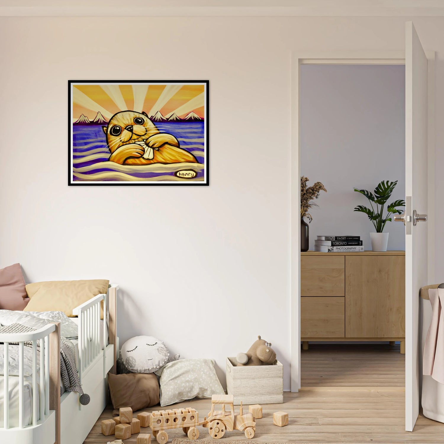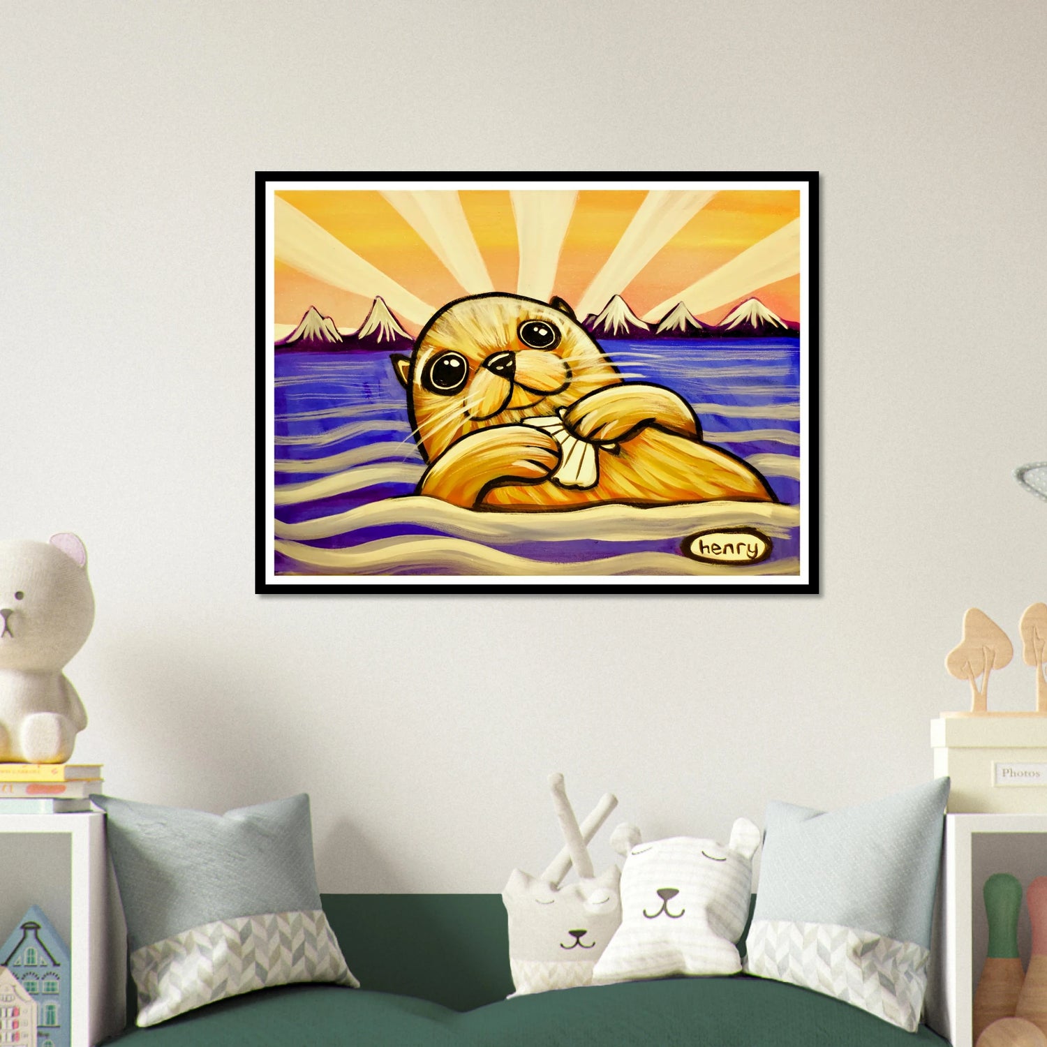 This poster is perfect for animal enthusiasts, children’s rooms, or anyone looking to add a whimsical touch to their décor. Order now to create a delightful focal point in your living space with our charming otter design!
