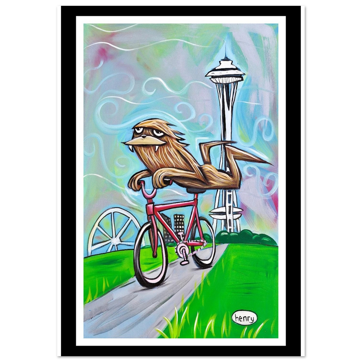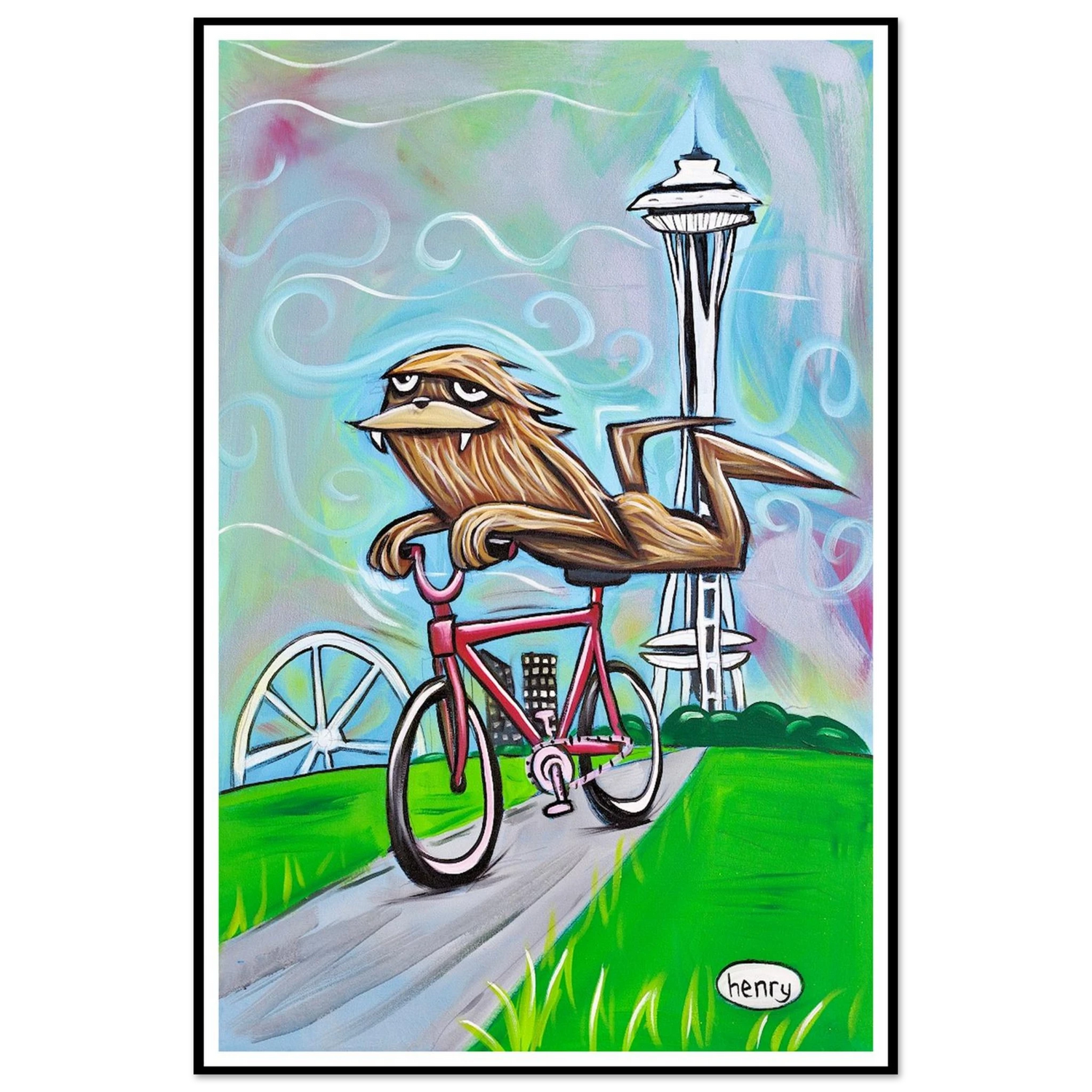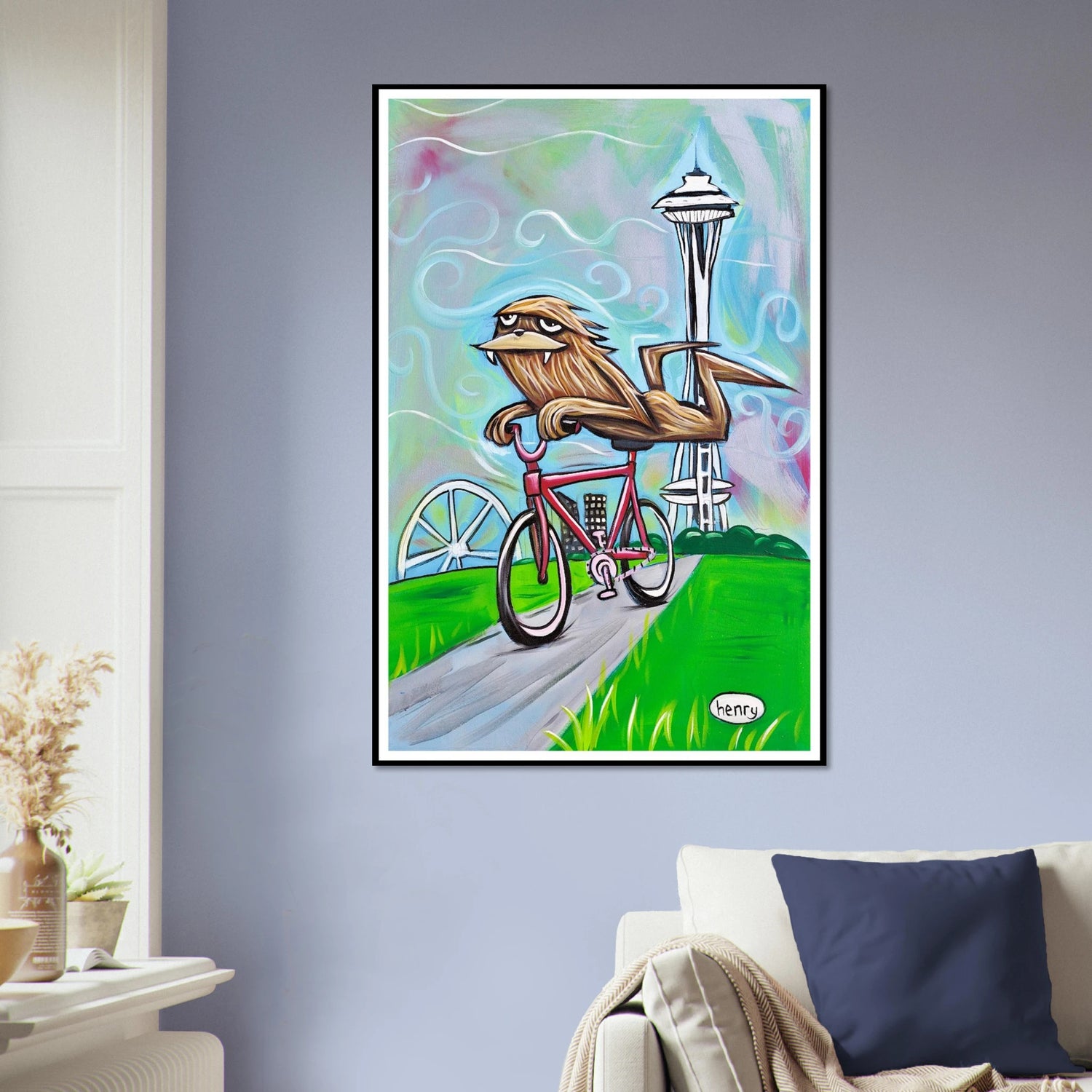 Sasquatch Riding a Bike in Seattle - Poster - is backordered and will ship as soon as it is back in stock.