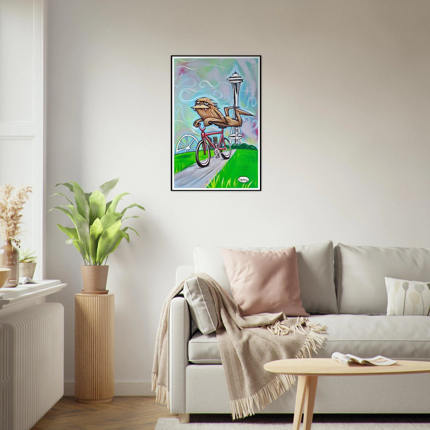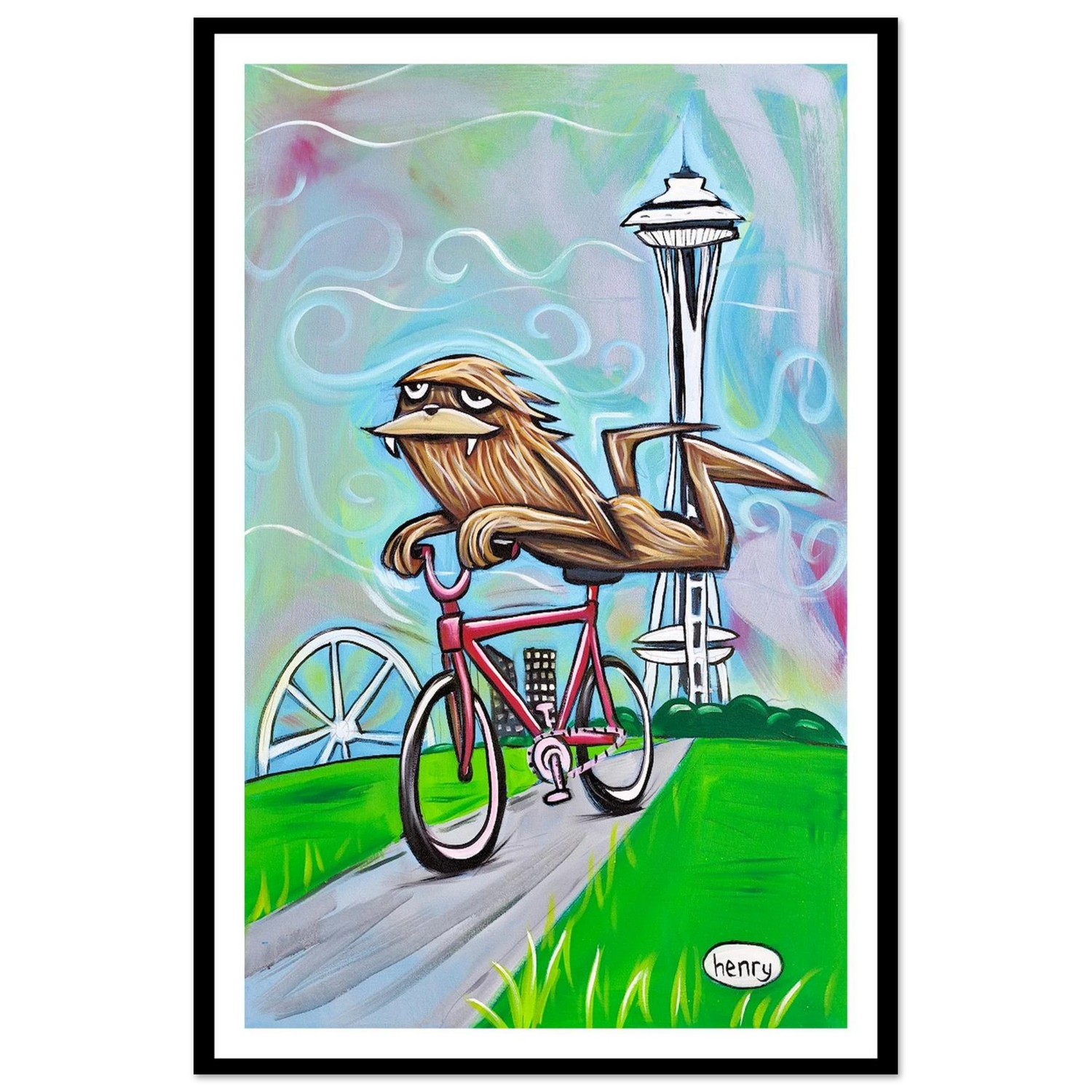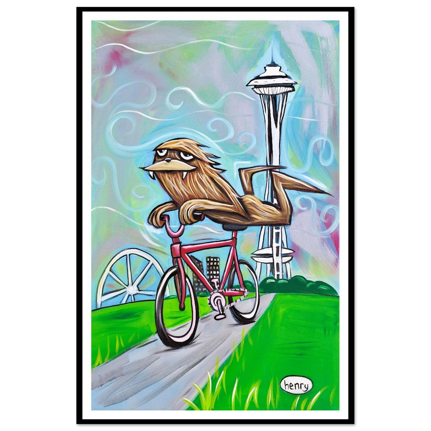 Sasquatch Riding a Bike in Seattle - Poster - is backordered and will ship as soon as it is back in stock.