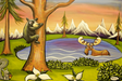 At the lake's edge, where waters lap gently, all creatures gather in quiet unity, their differences dissolved in the stillness of shared sustenance.
