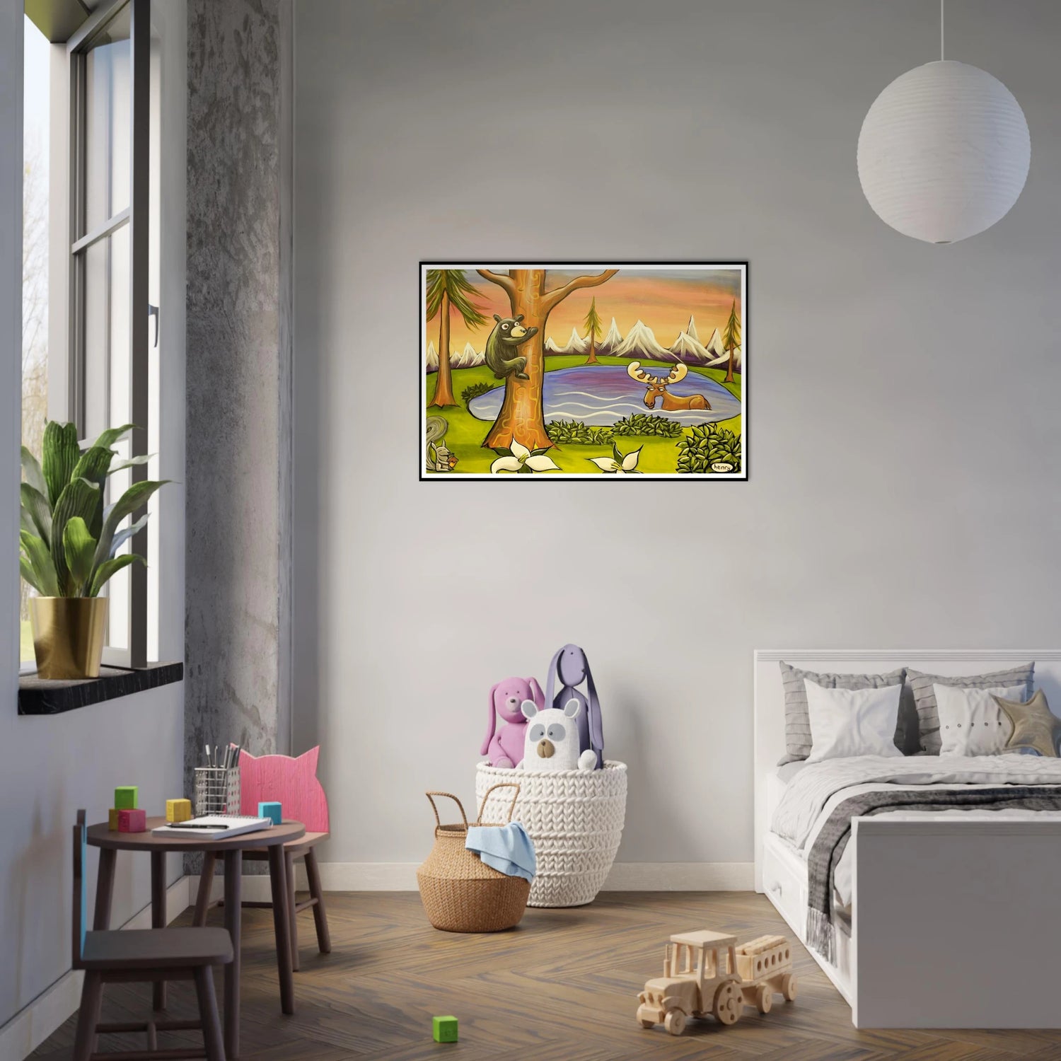 At the lake's edge, where waters lap gently, all creatures gather in quiet unity, their differences dissolved in the stillness of shared sustenance.
