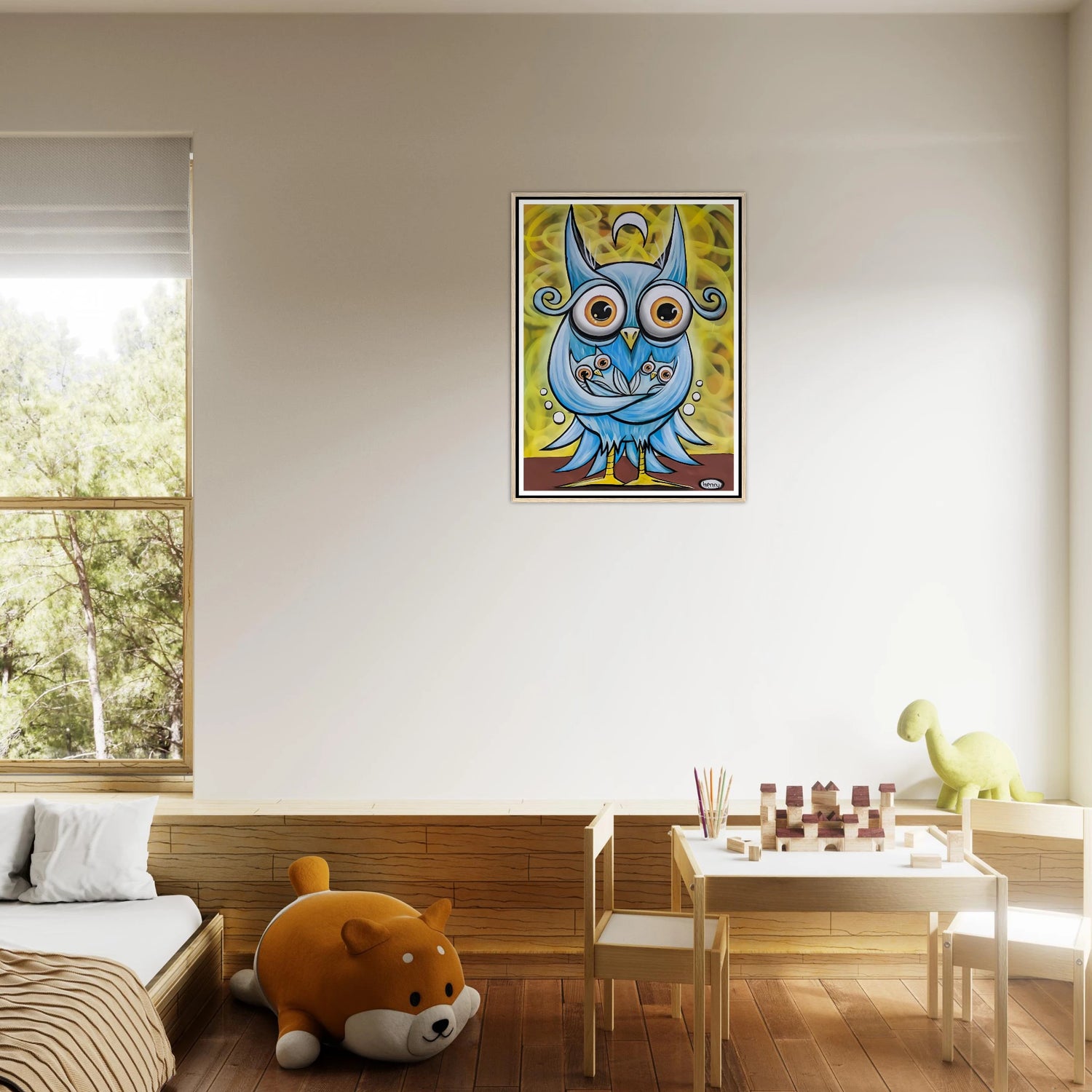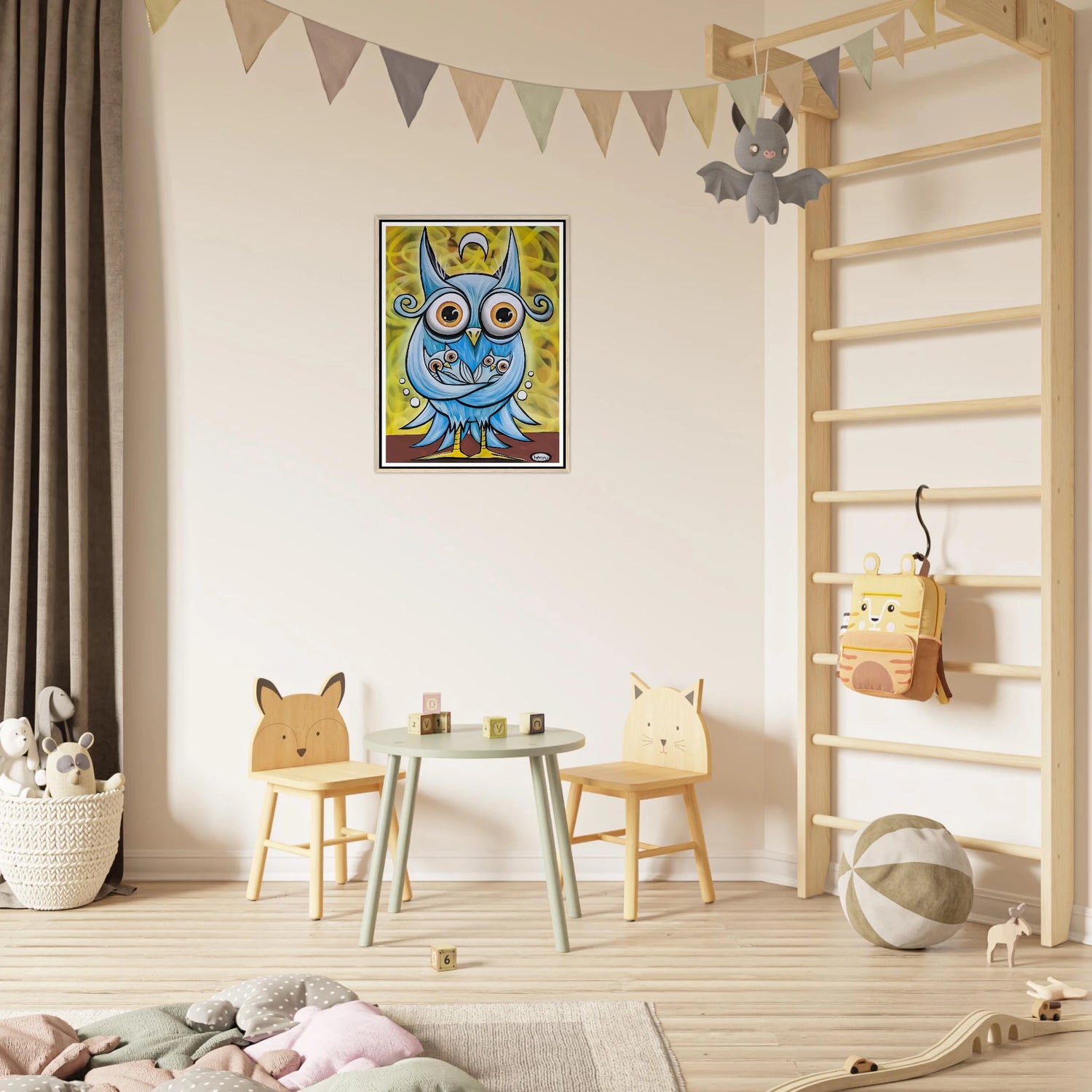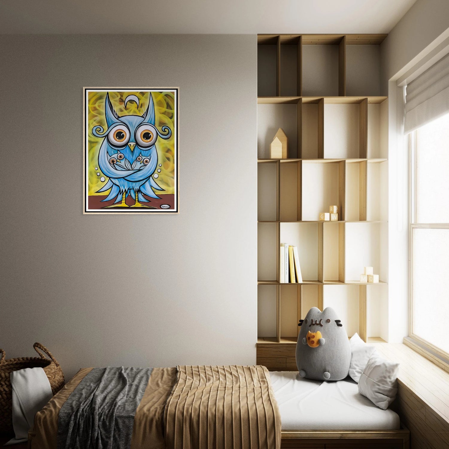 Momma owl hoots her babies a bedtime song. Enjoy this beautiful and calming art in a nursery, bathroom, or baby's bedroom.