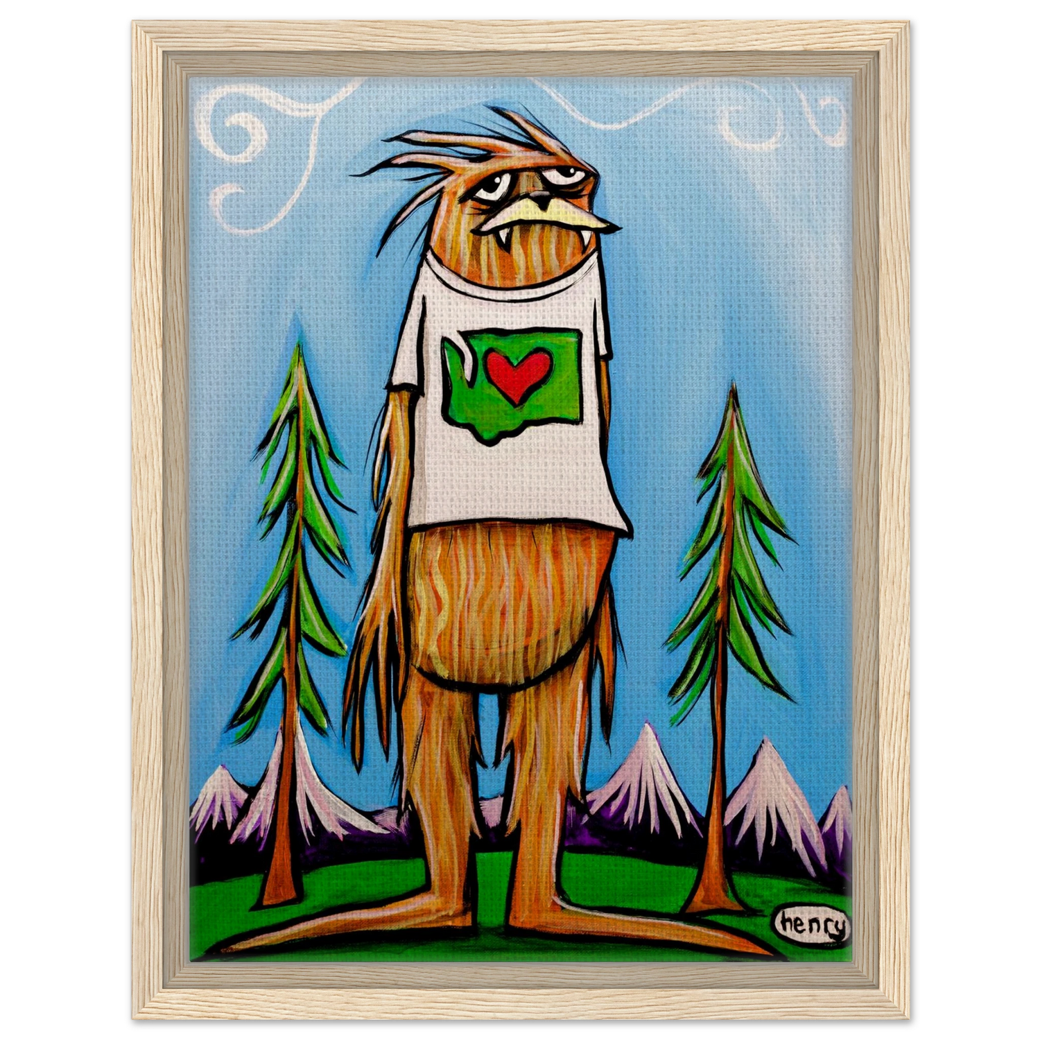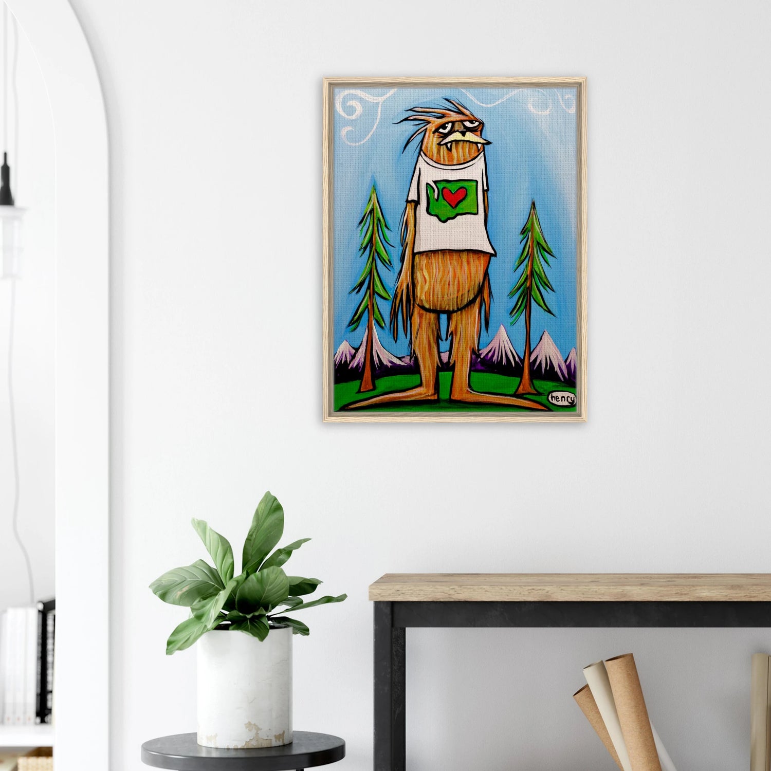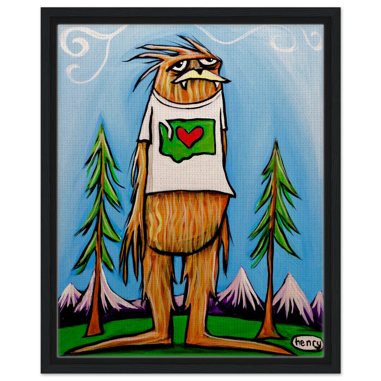 Sasquatch Big in Washington - Framed Canvas Print - is backordered and will ship as soon as it is back in stock.