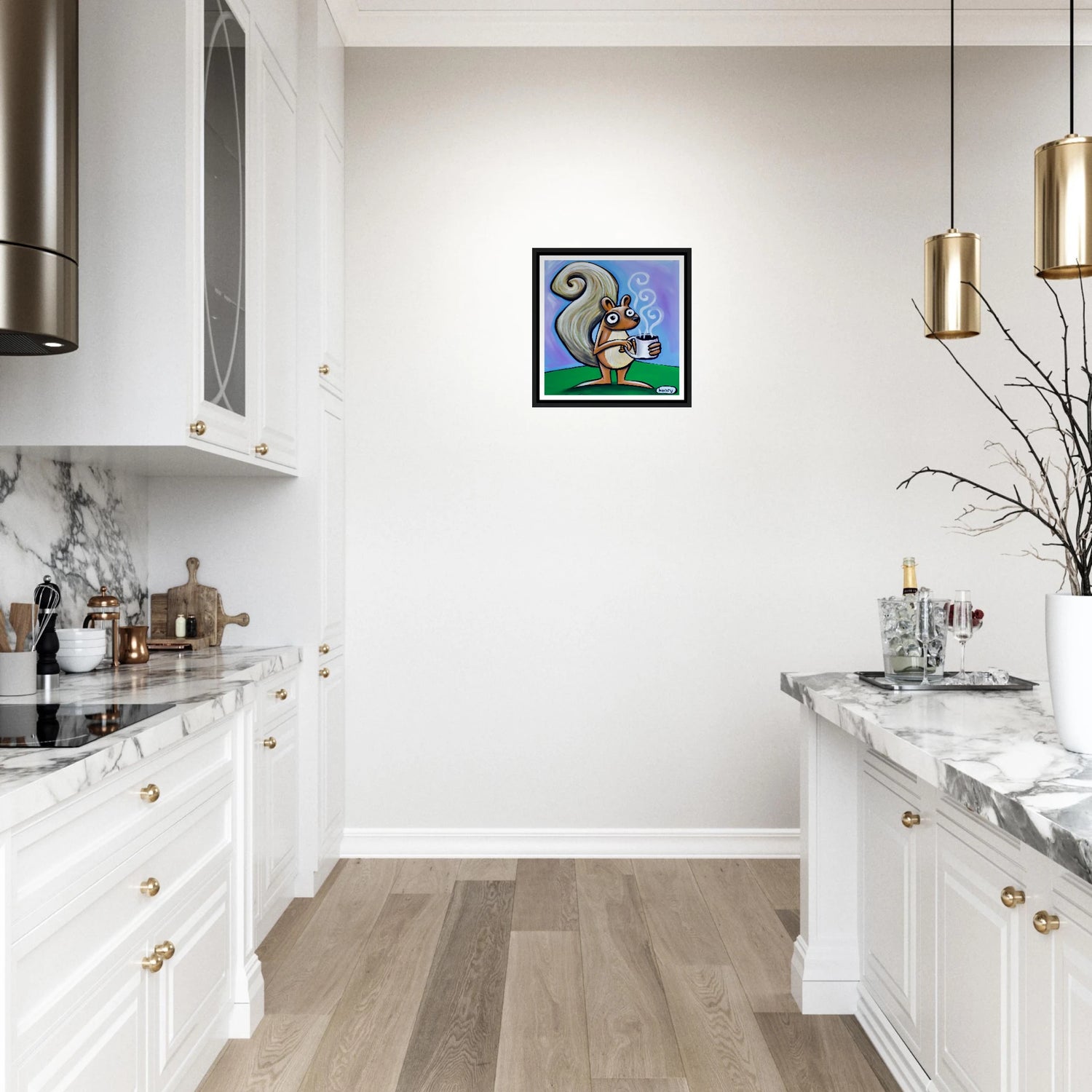 Bring a touch of whimsy to your space with our stunning Squirrel with Coffee mounted framed poster. This delightful piece captures the essence of cozy moments and nature’s charm, perfect for coffee lovers and wildlife enthusiasts alike.