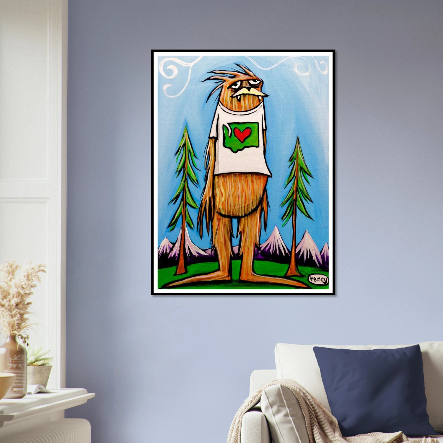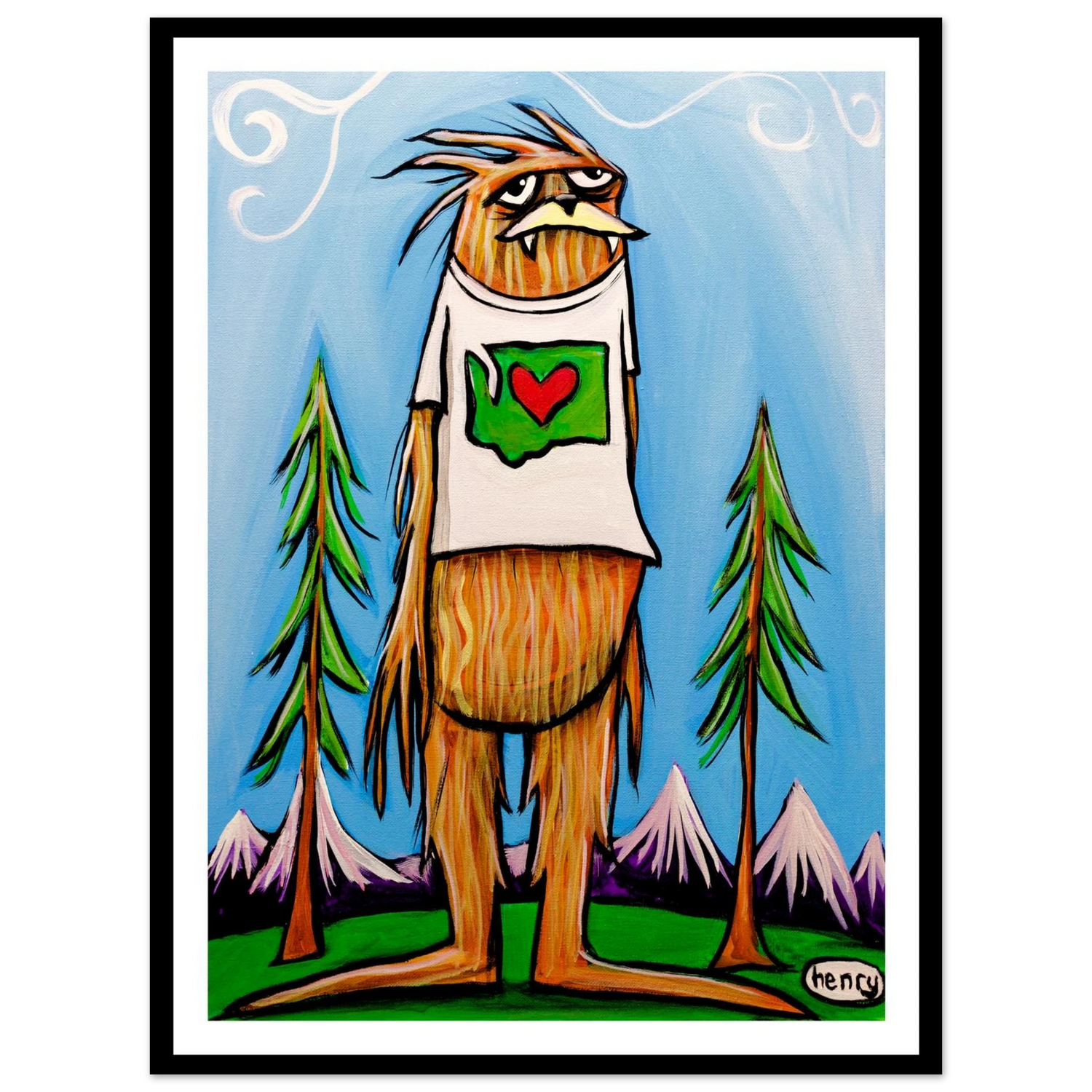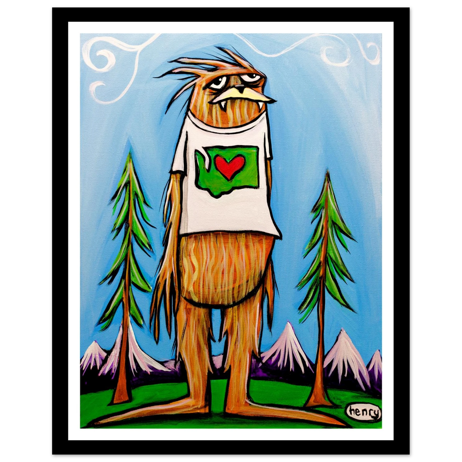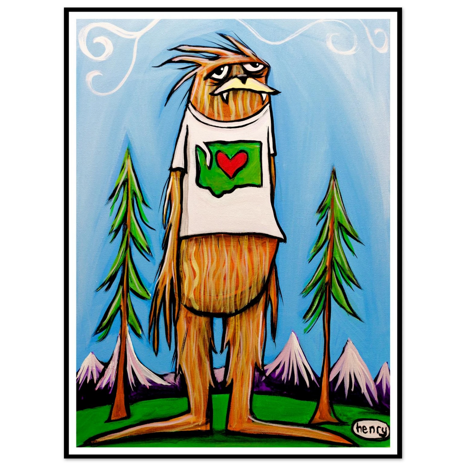 This whimsical painting by artist Henry features Washington's #1 citizen. Add a playful touch of regional pride with this bold and expressive piece, great for Washingtonians seeking a unique, lighthearted touch to their home or office.