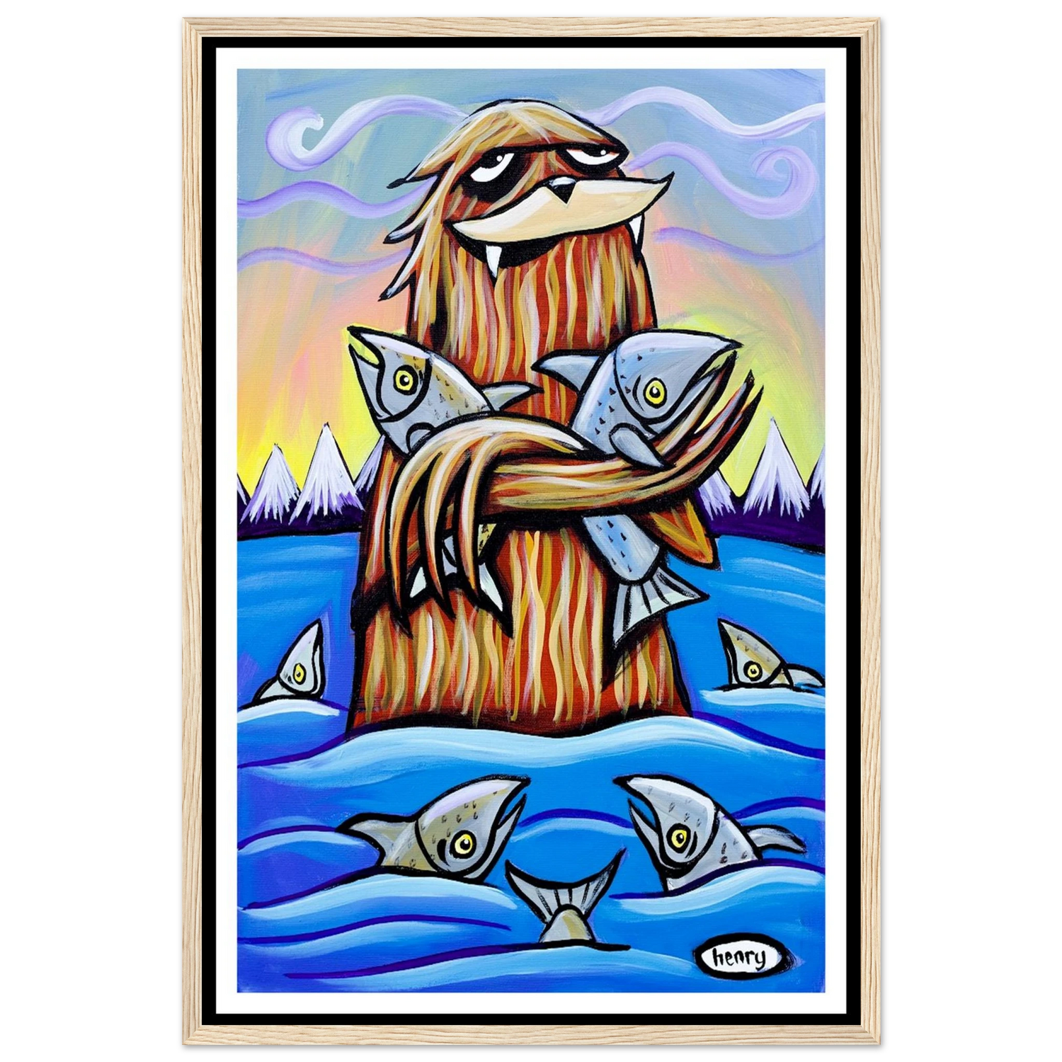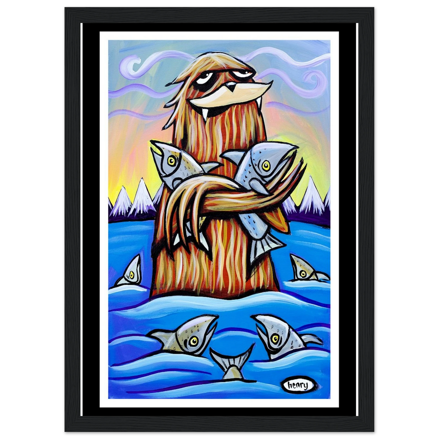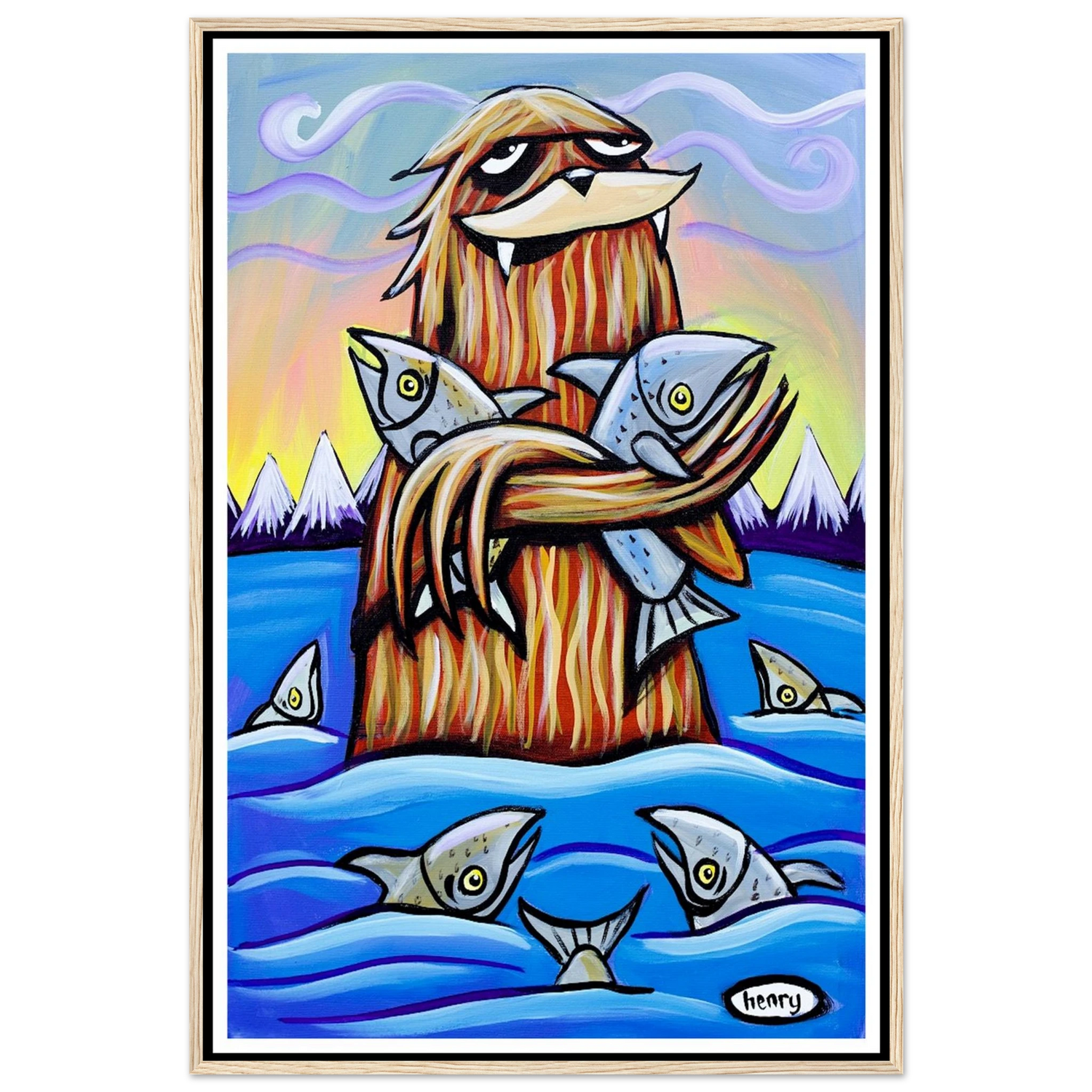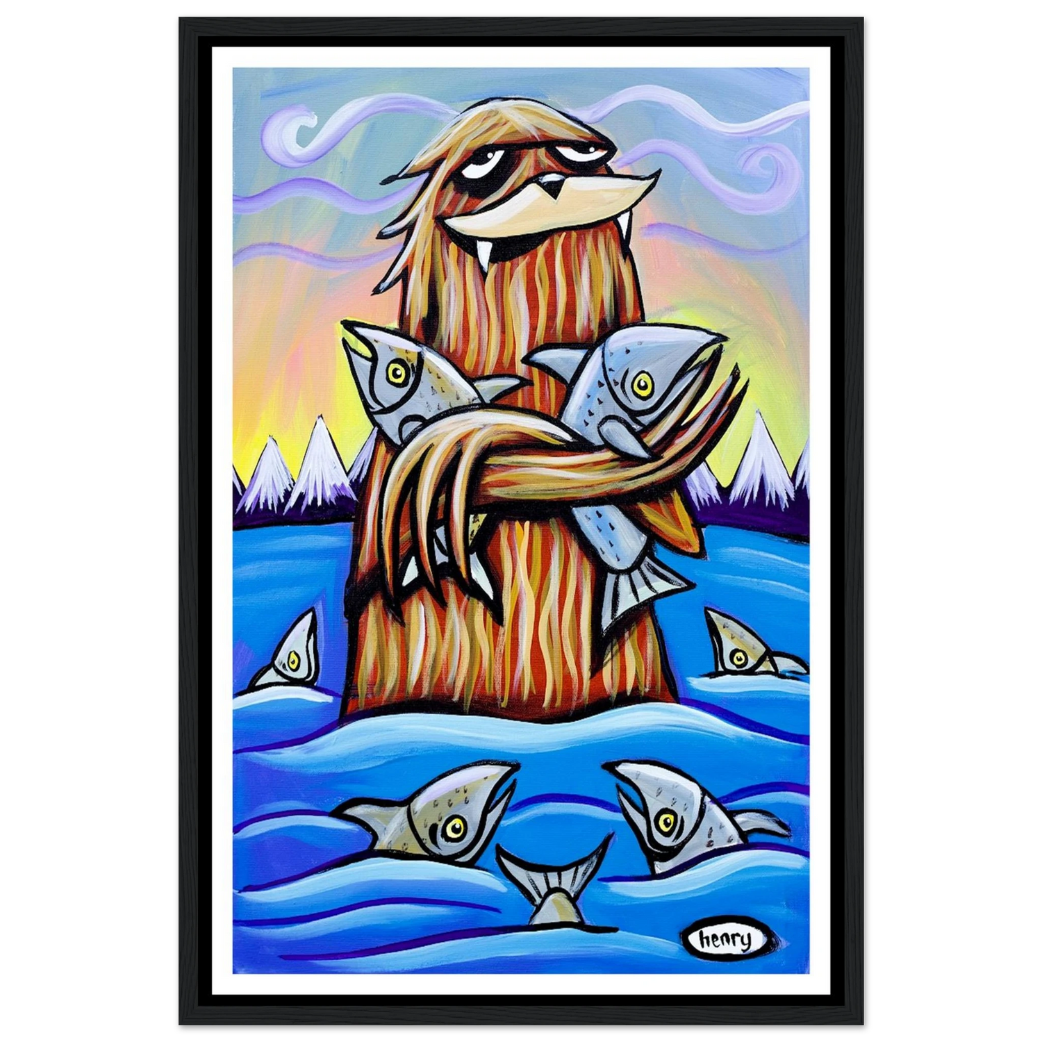 Sasquatch Salmon Snuggle - Mounted Framed Poster