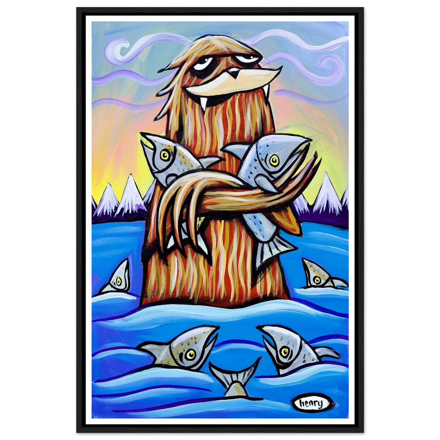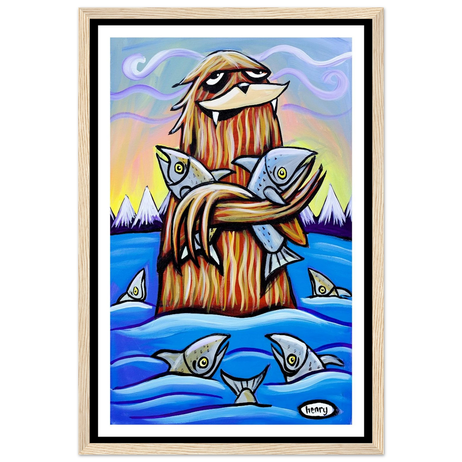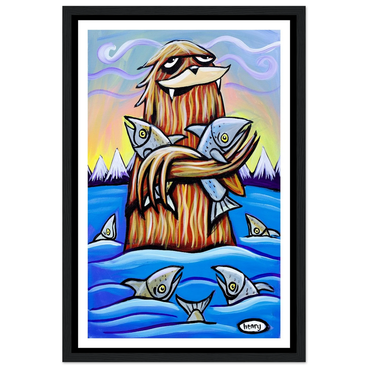 Sasquatch Salmon Snuggle - Mounted Framed Poster