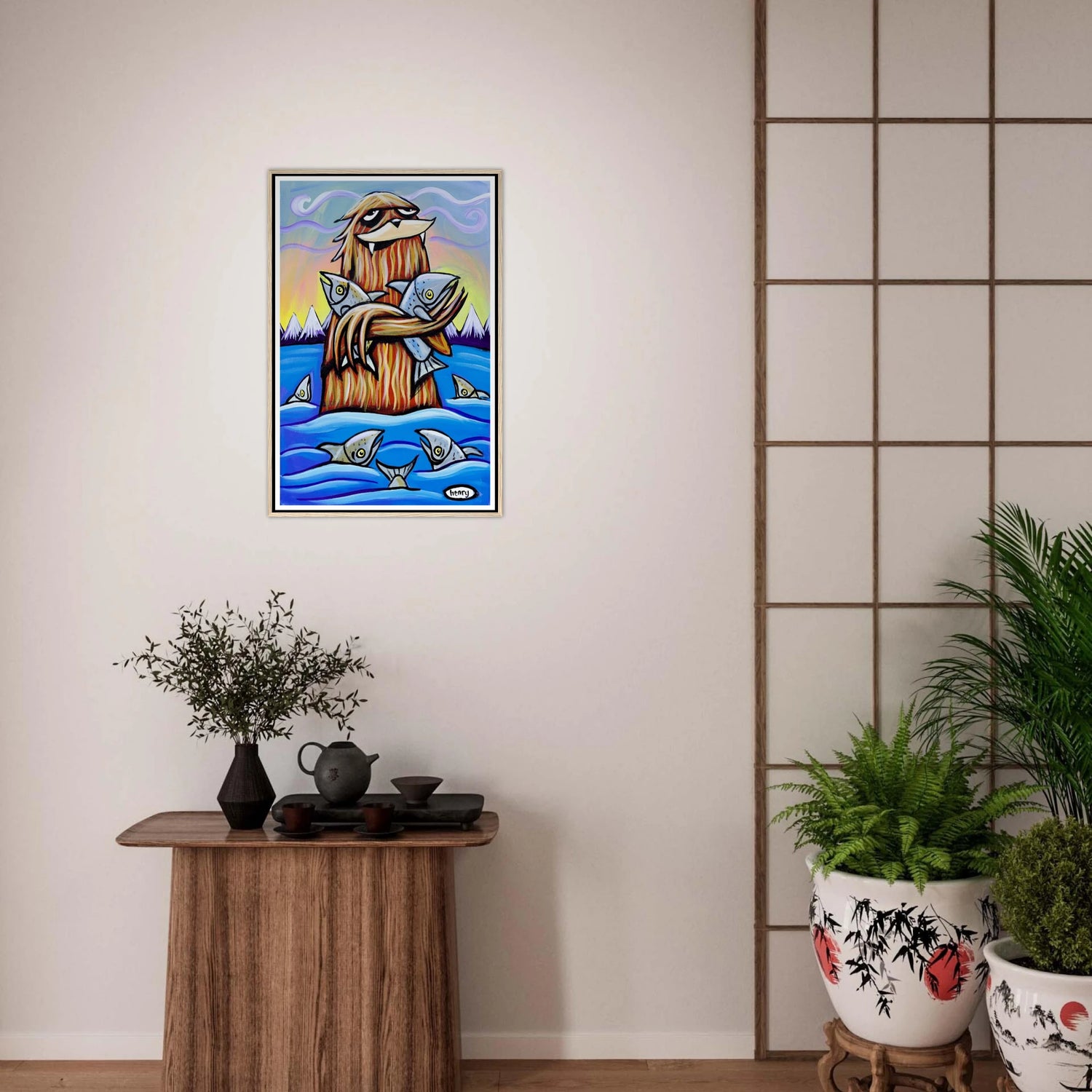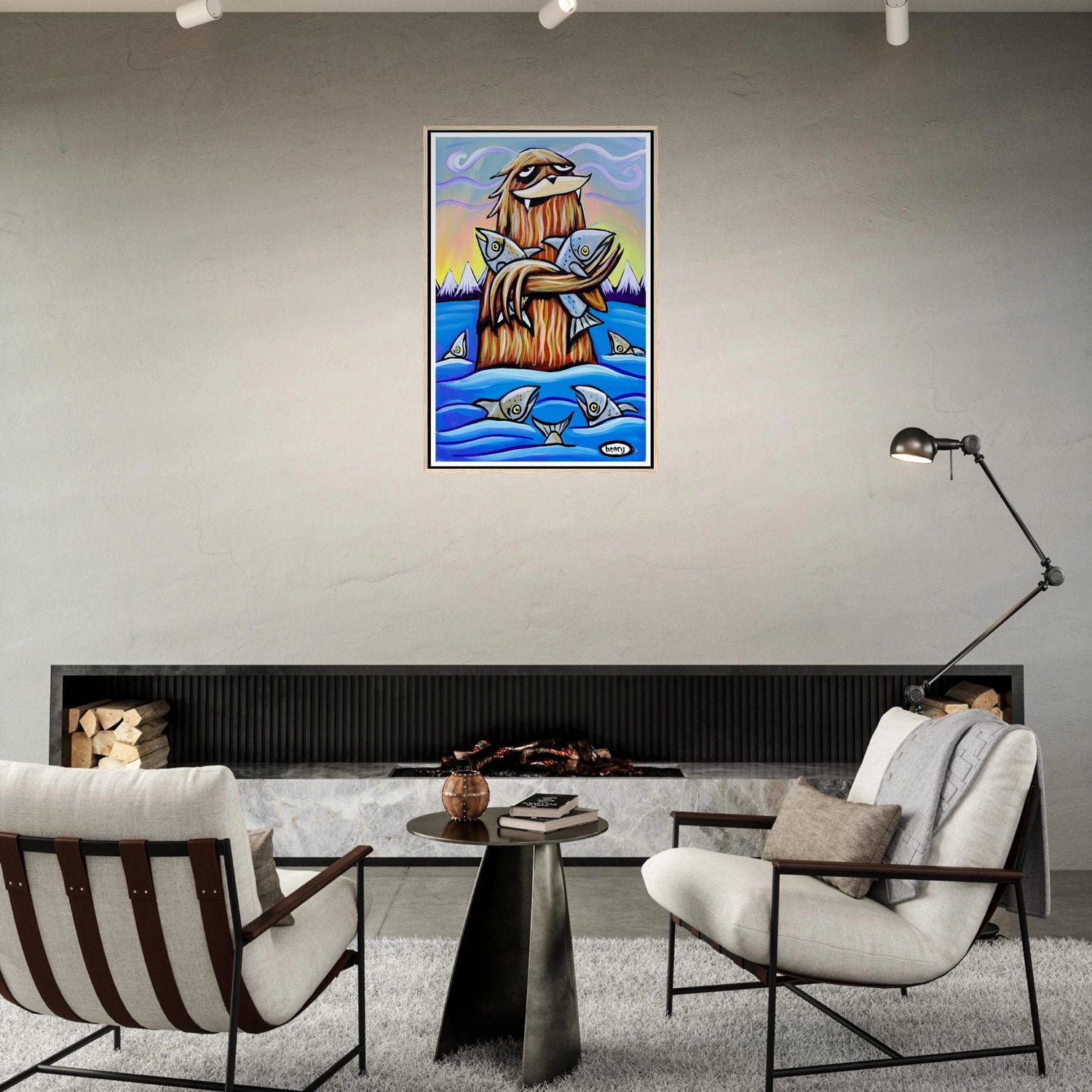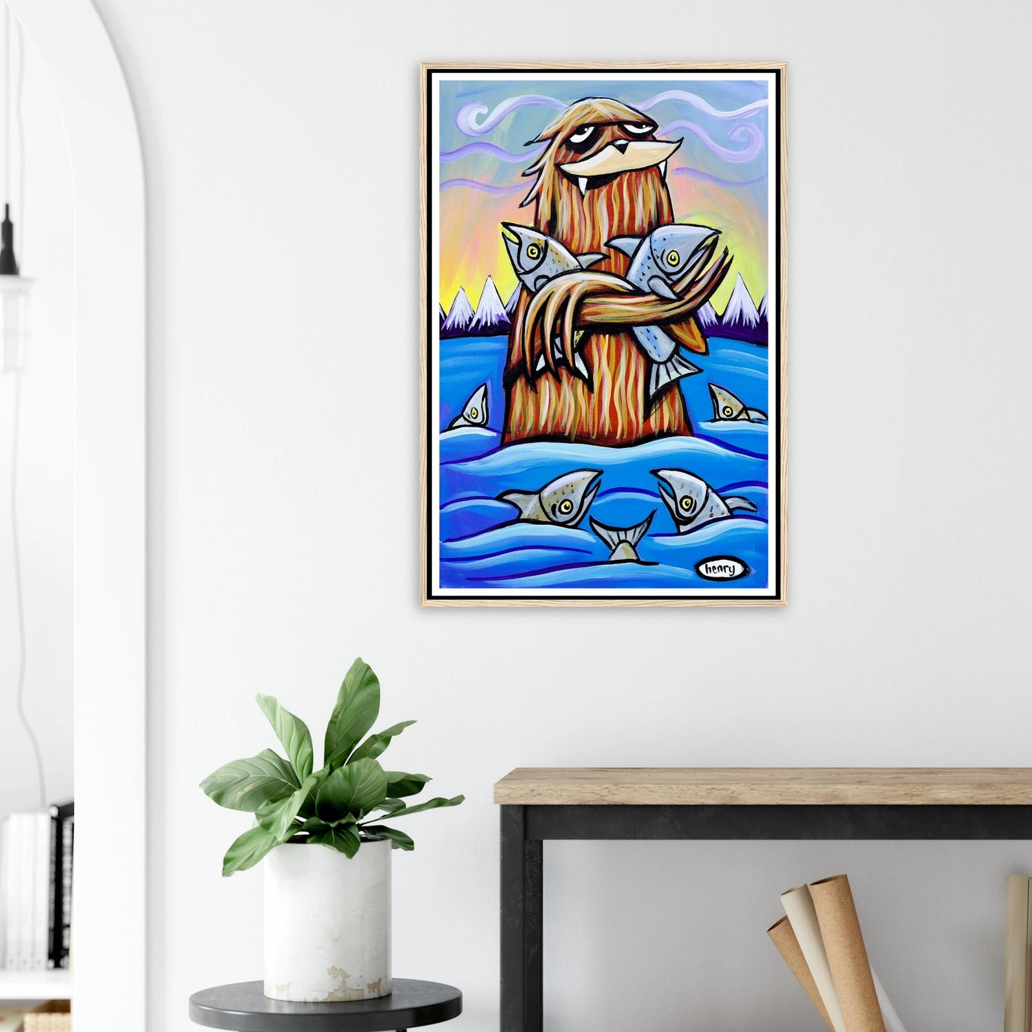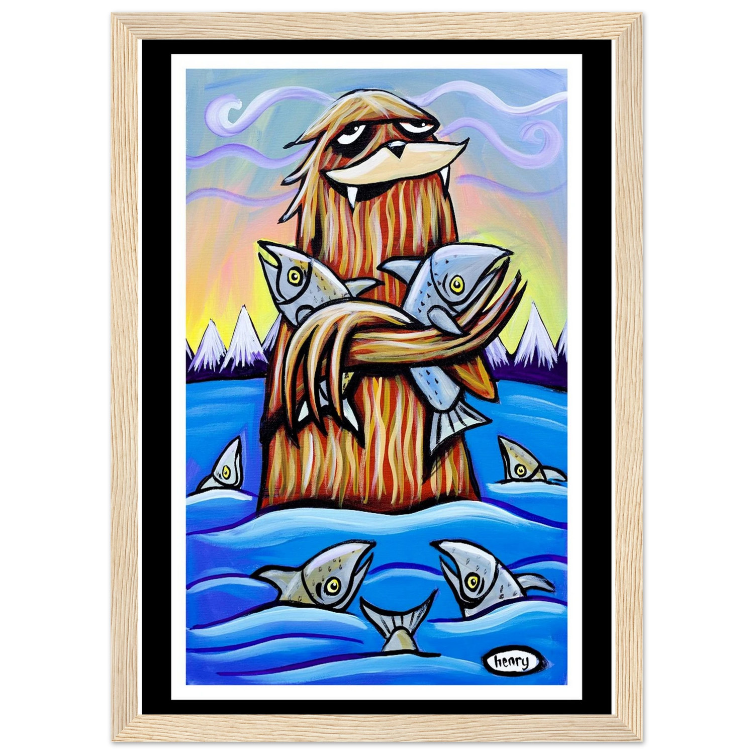 Sasquatch Salmon Snuggle - Mounted Framed Poster