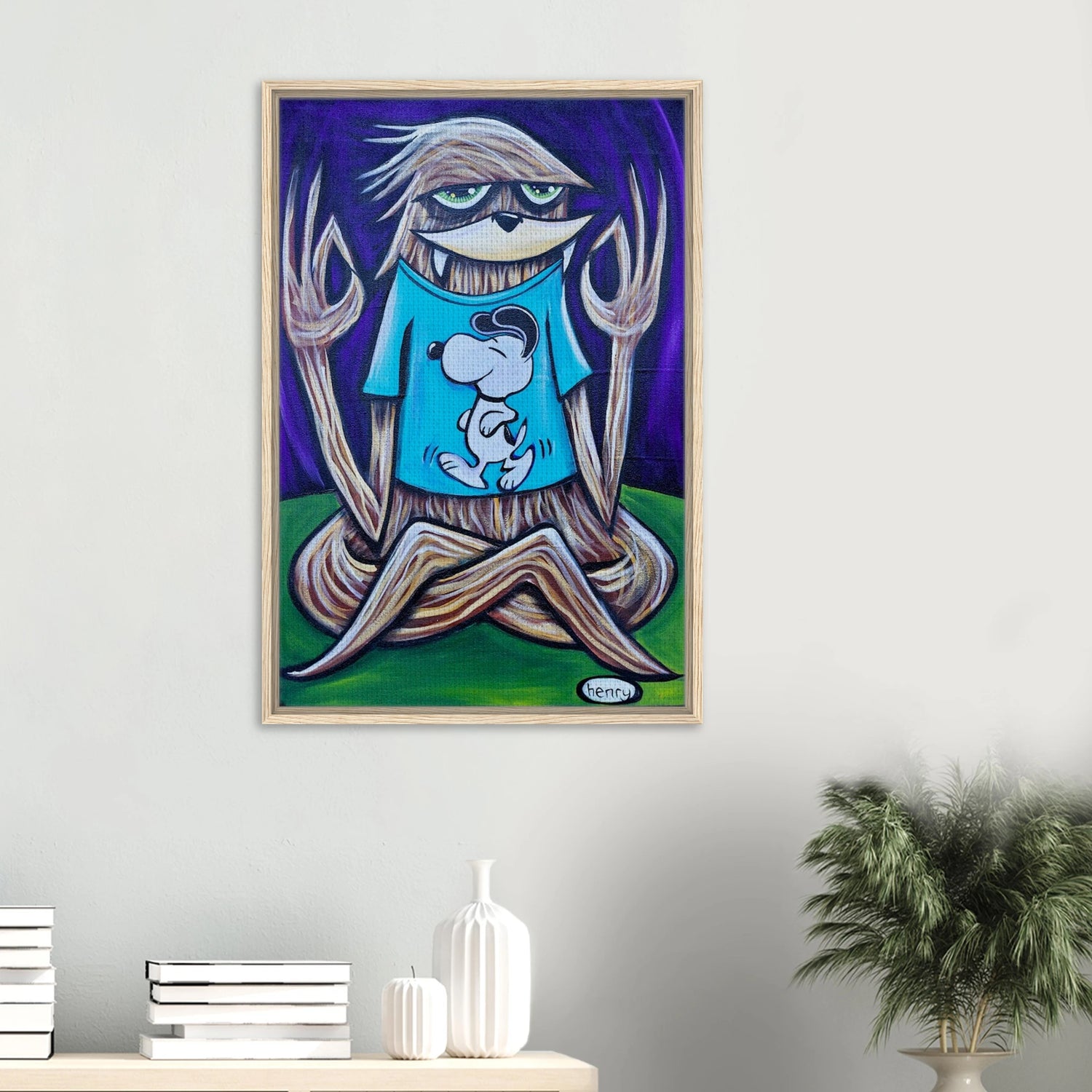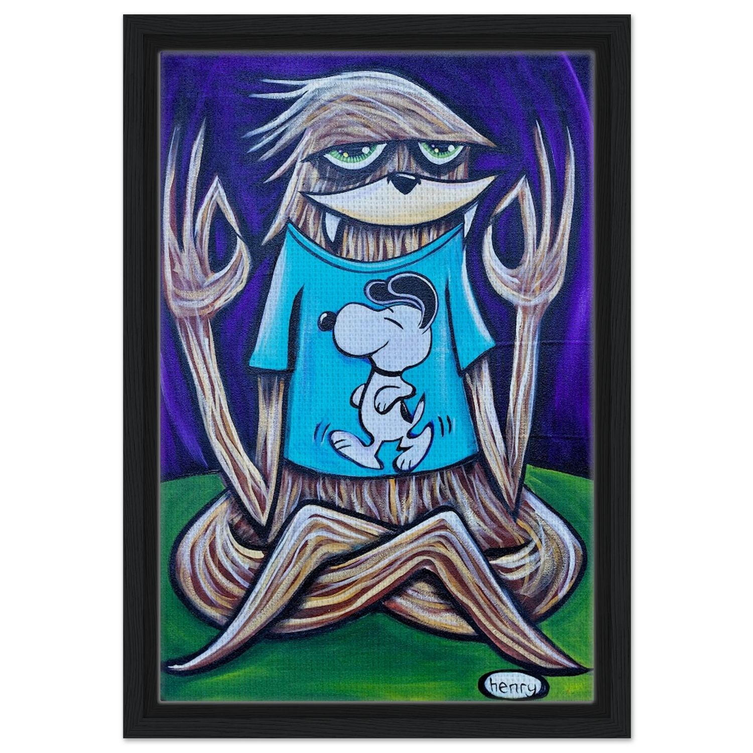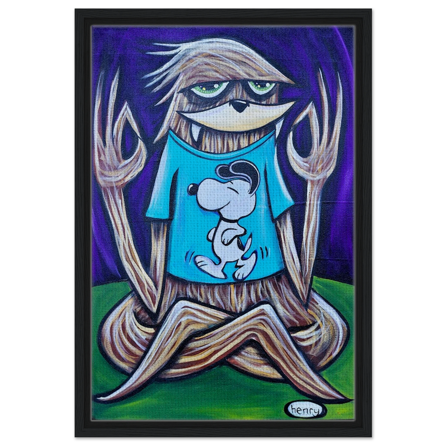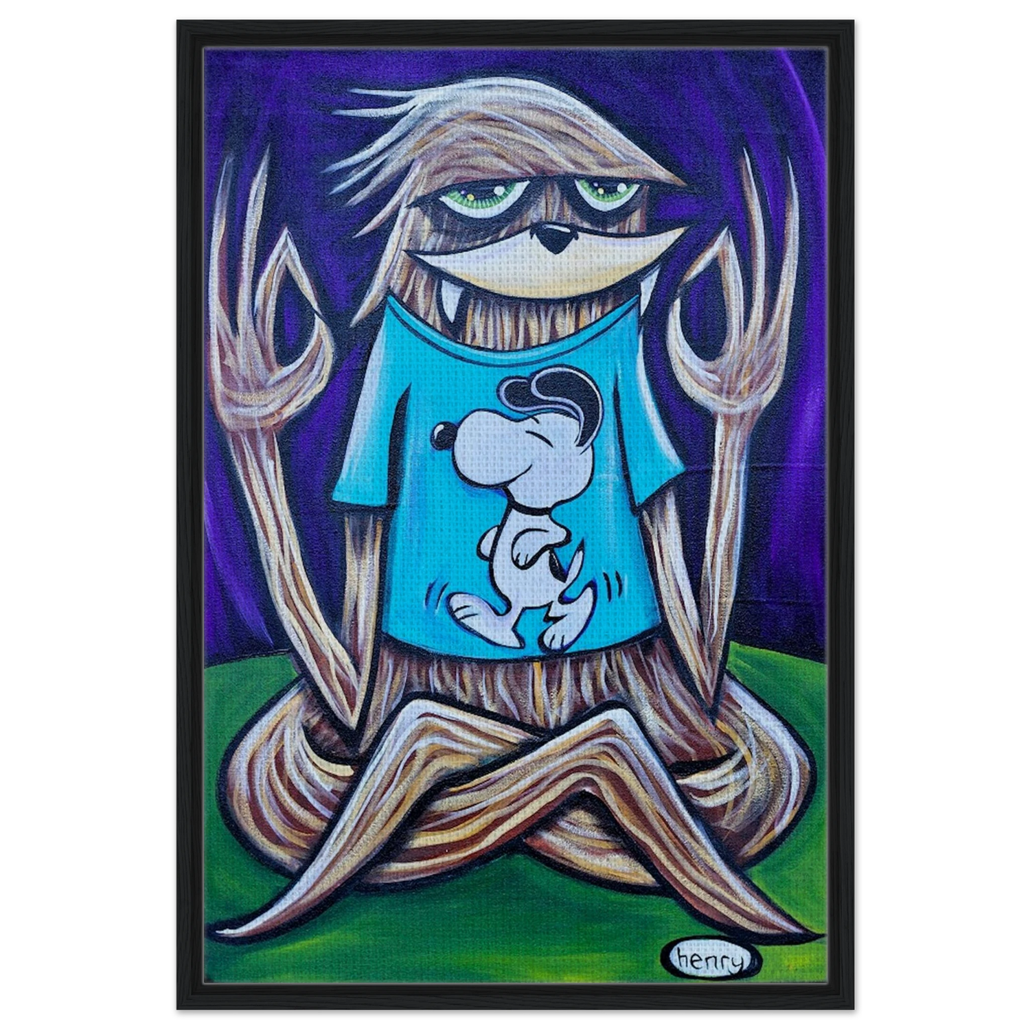 Sasquatch Loves Snoopy - Framed Canvas Print