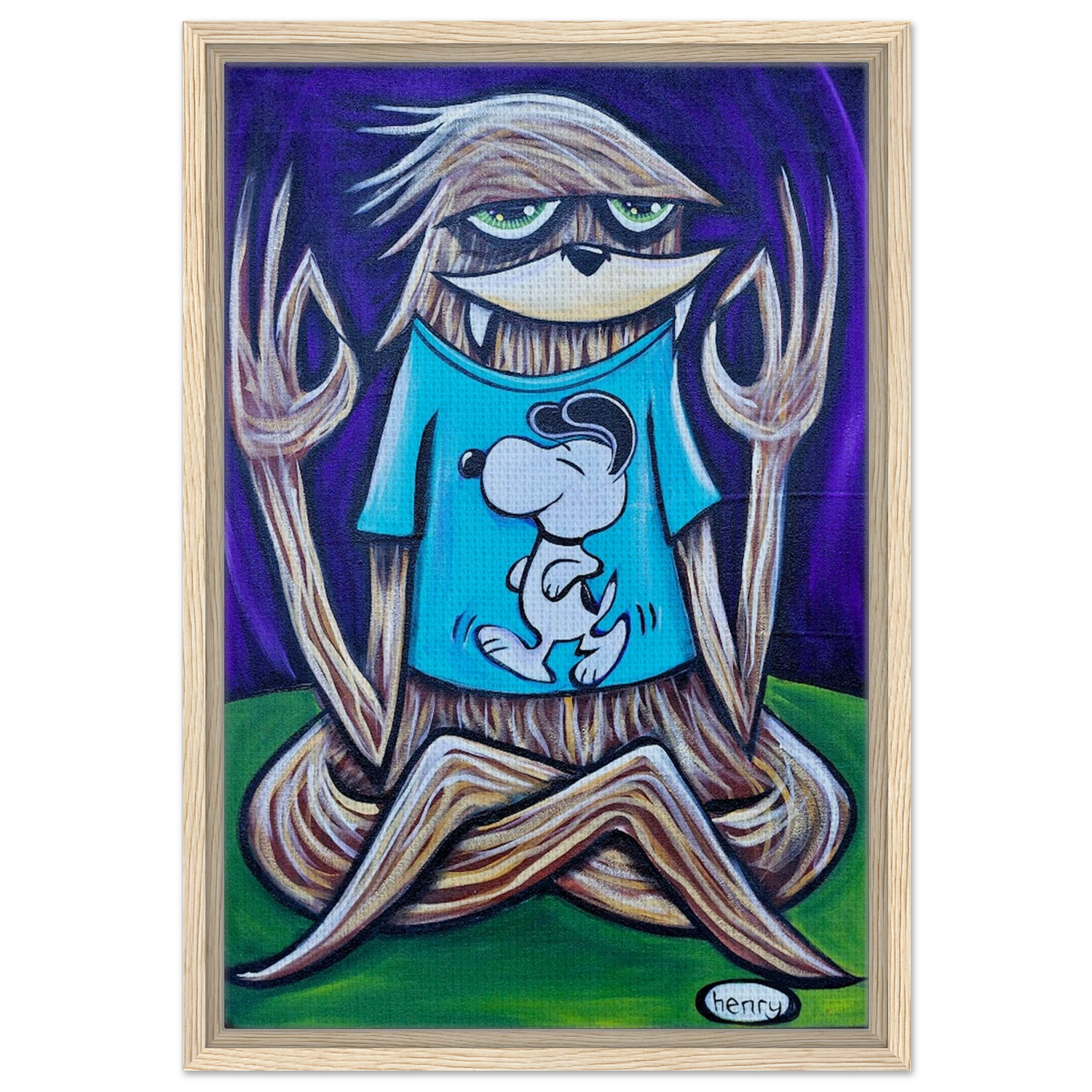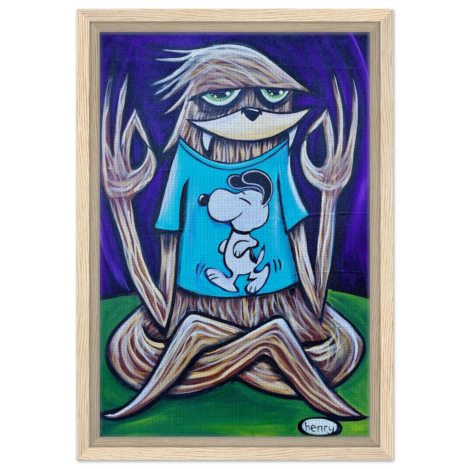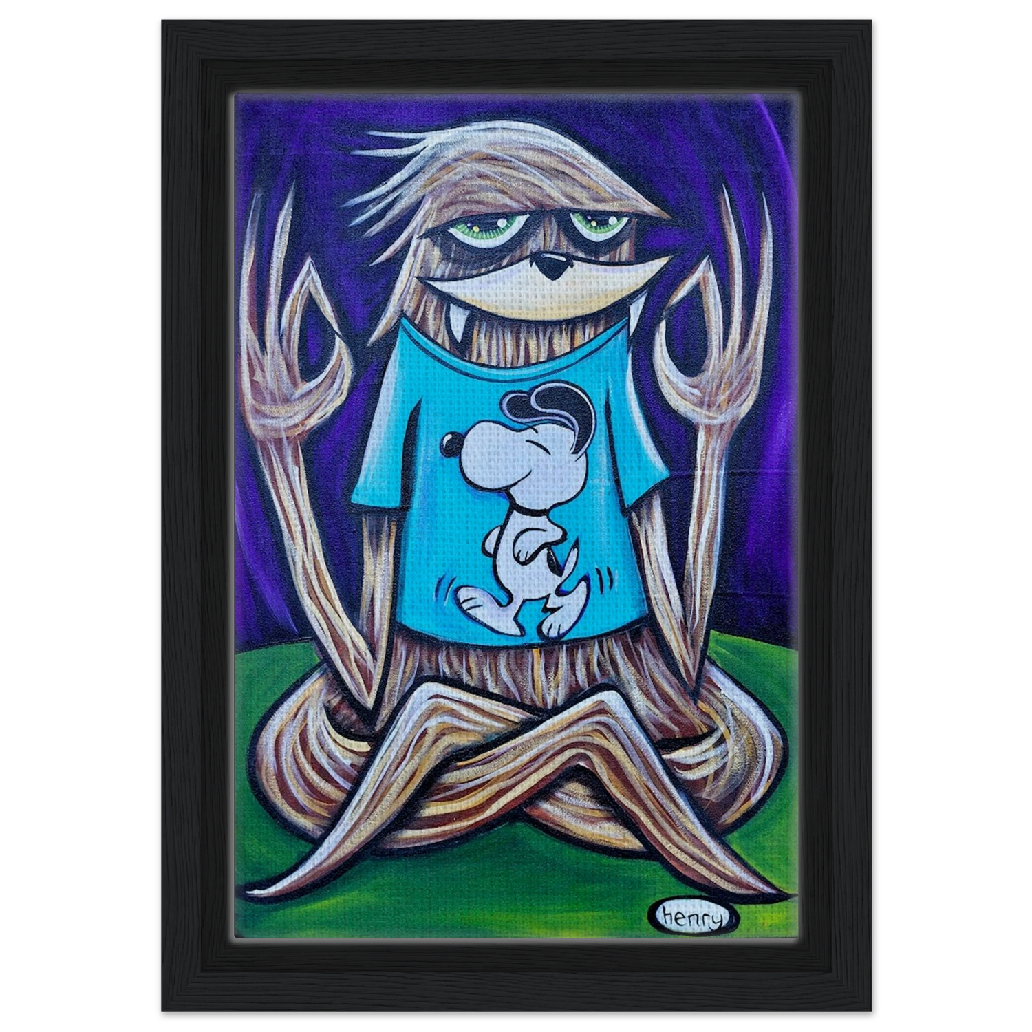 Sasquatch Loves Snoopy - Framed Canvas Print