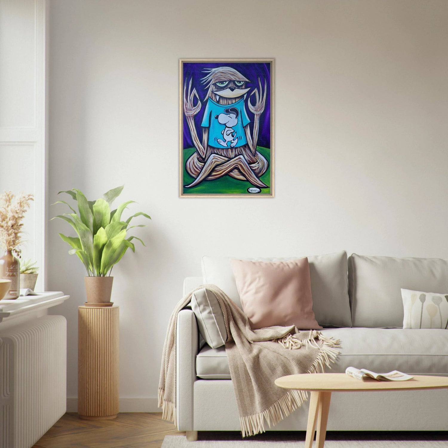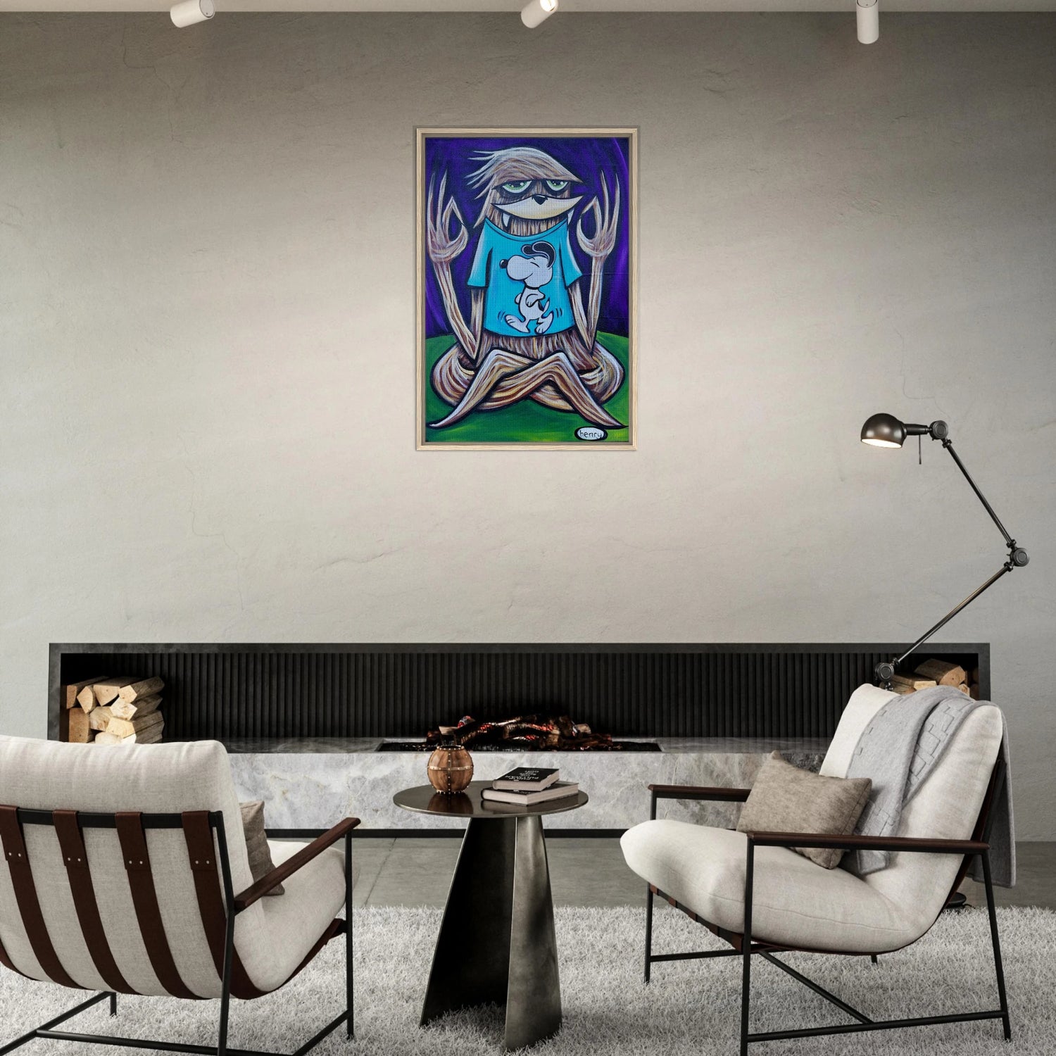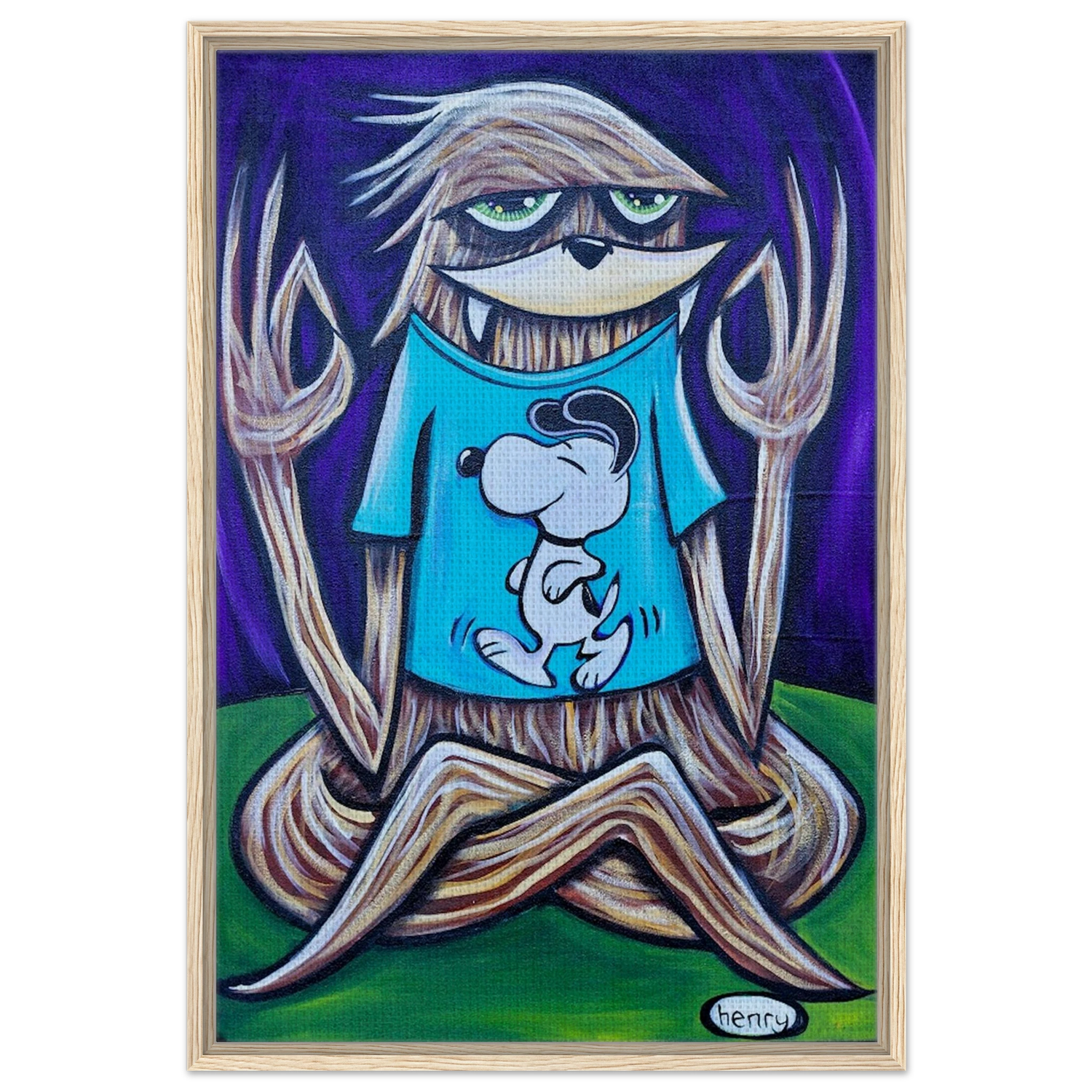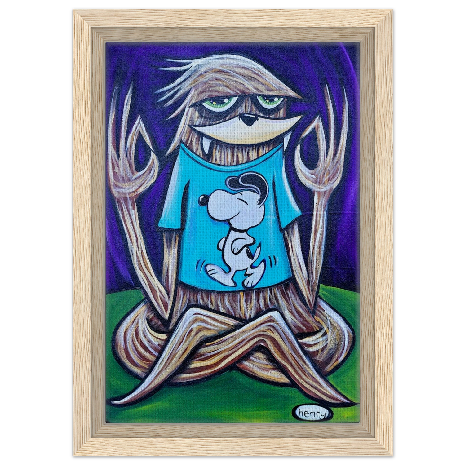 Sasquatch Loves Snoopy - Framed Canvas Print