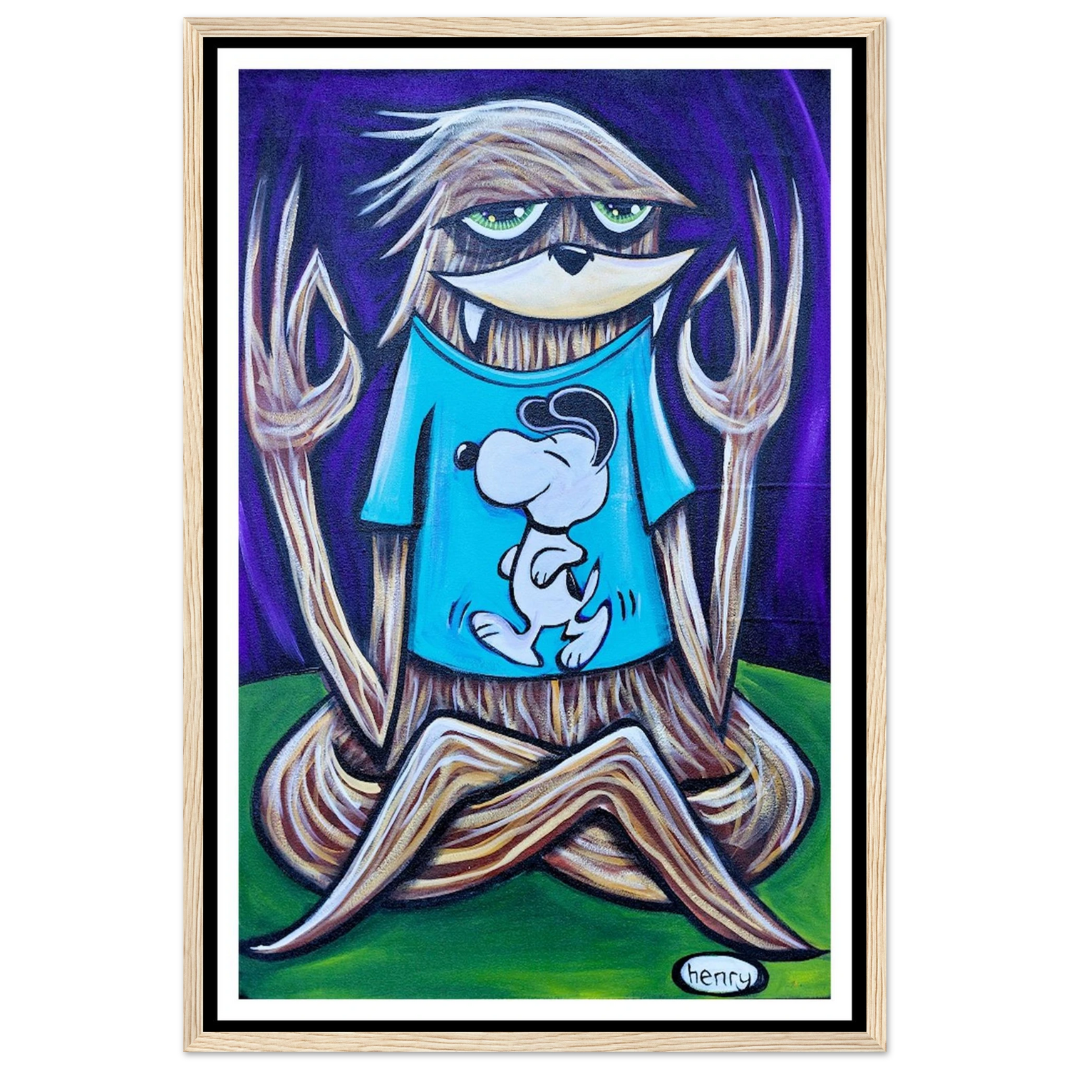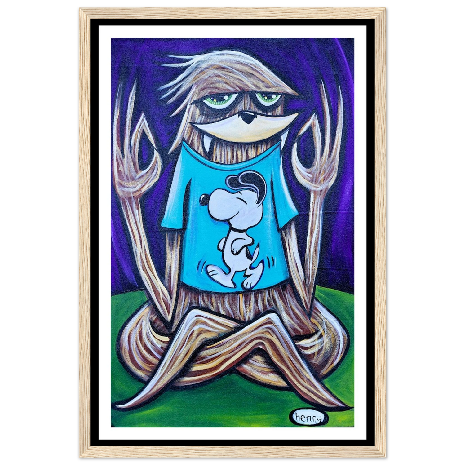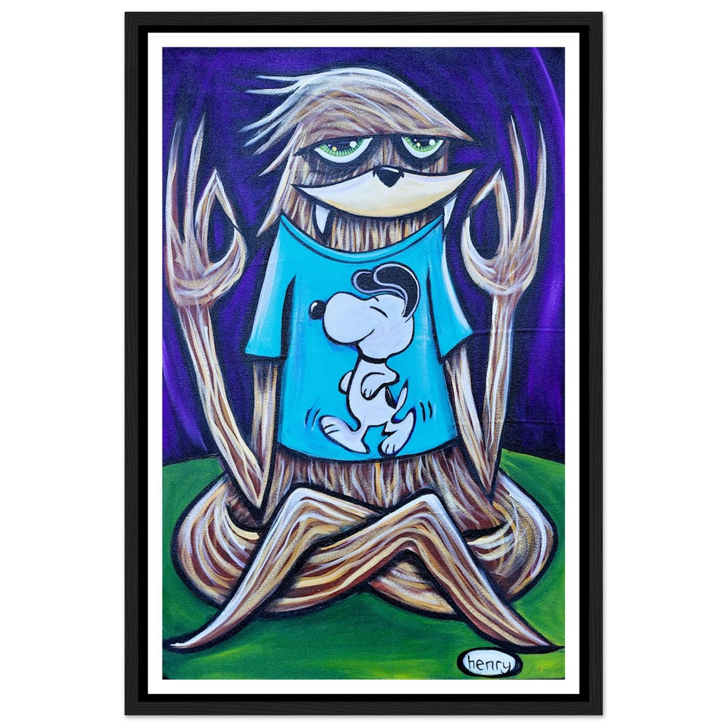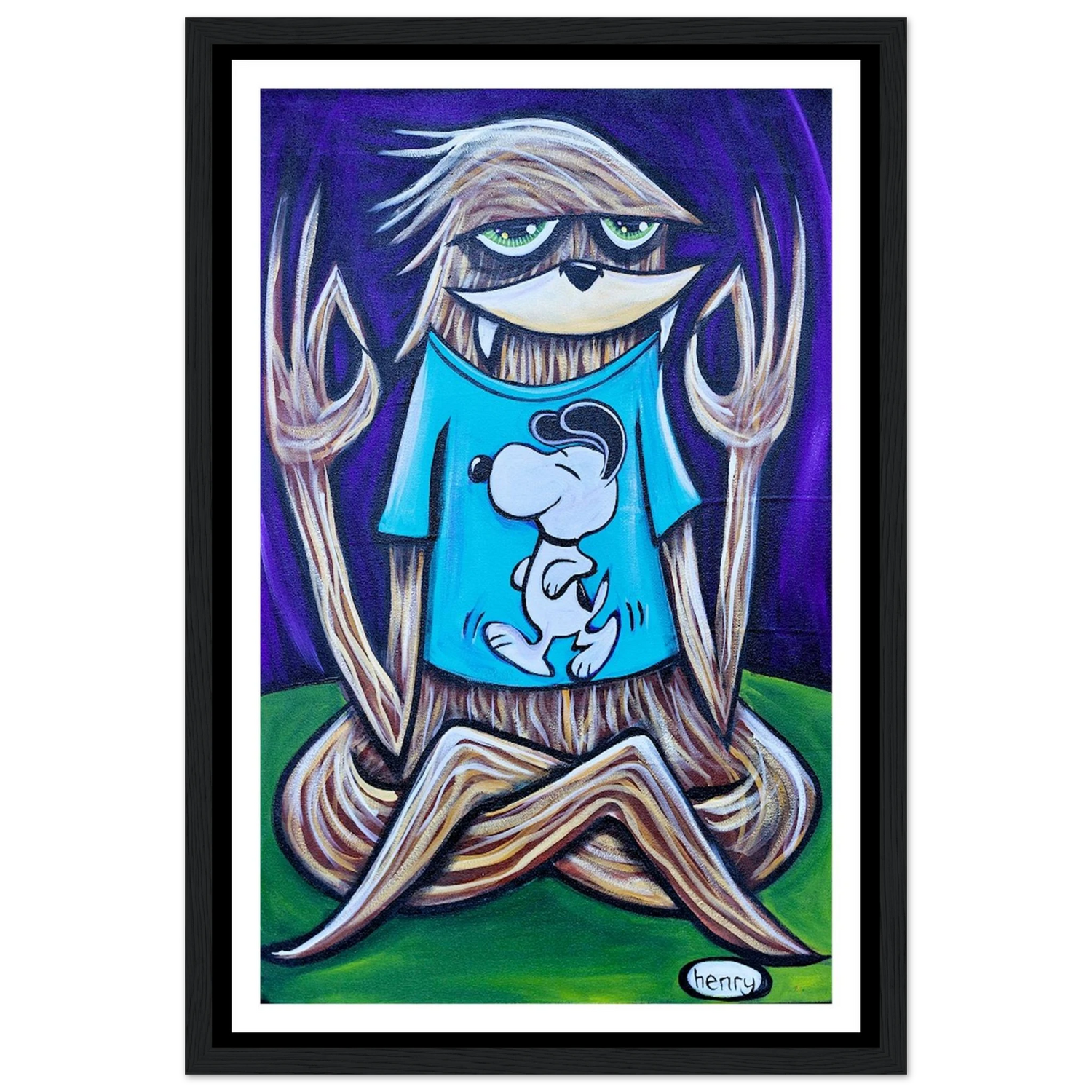 Sasquatch Loves Snoopy - Mounted Framed Poster