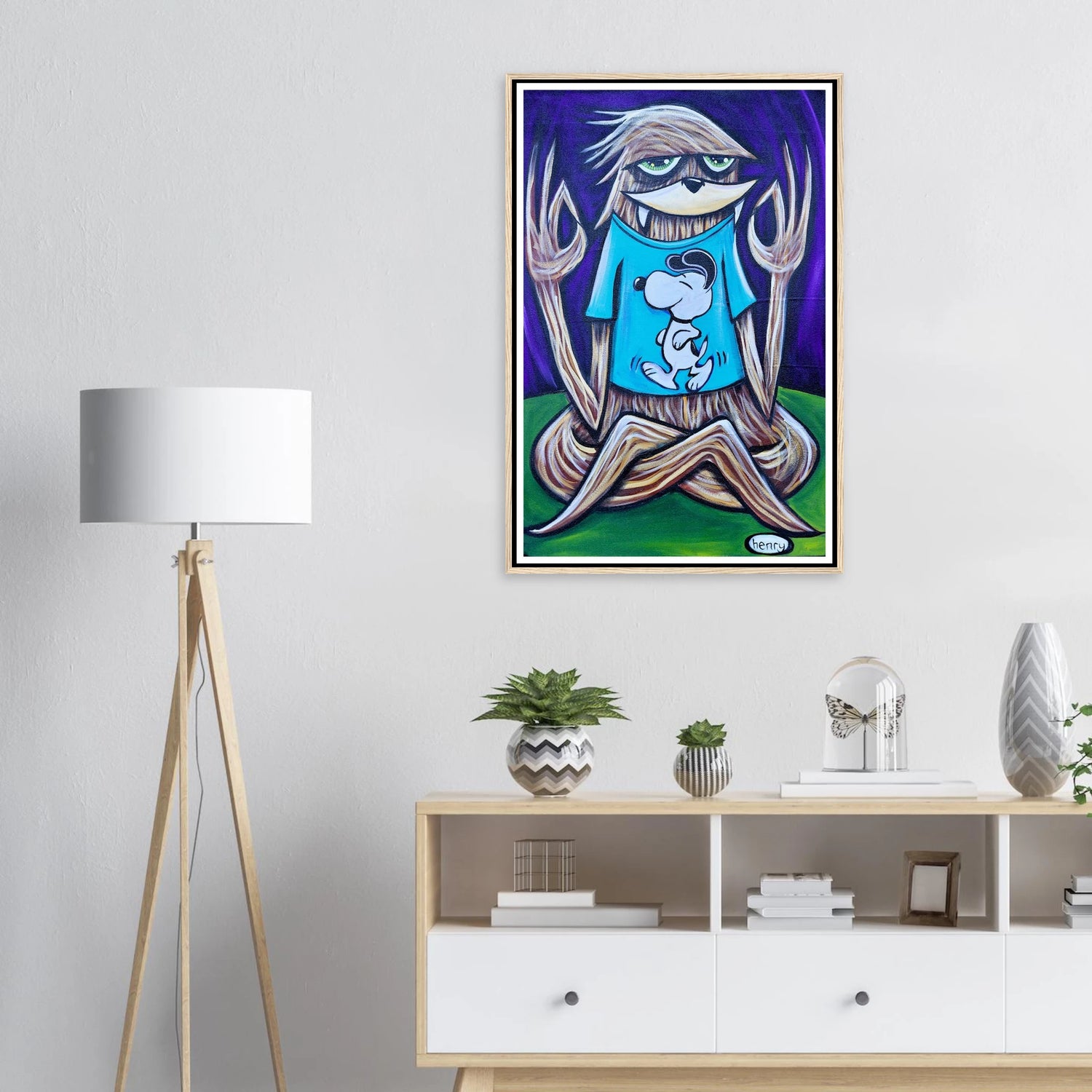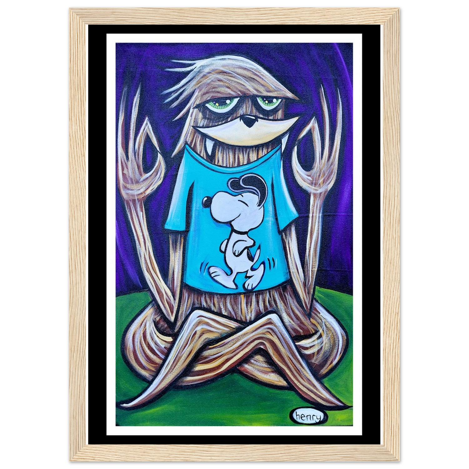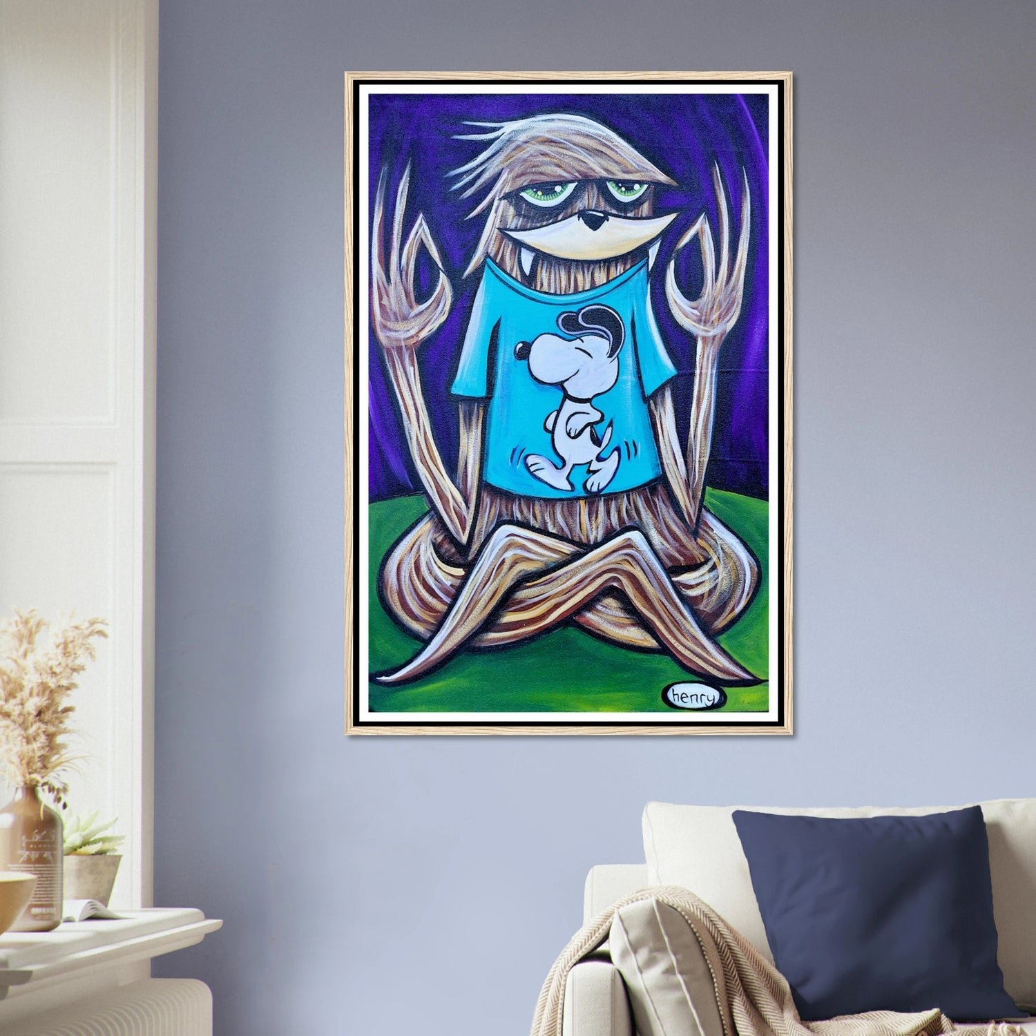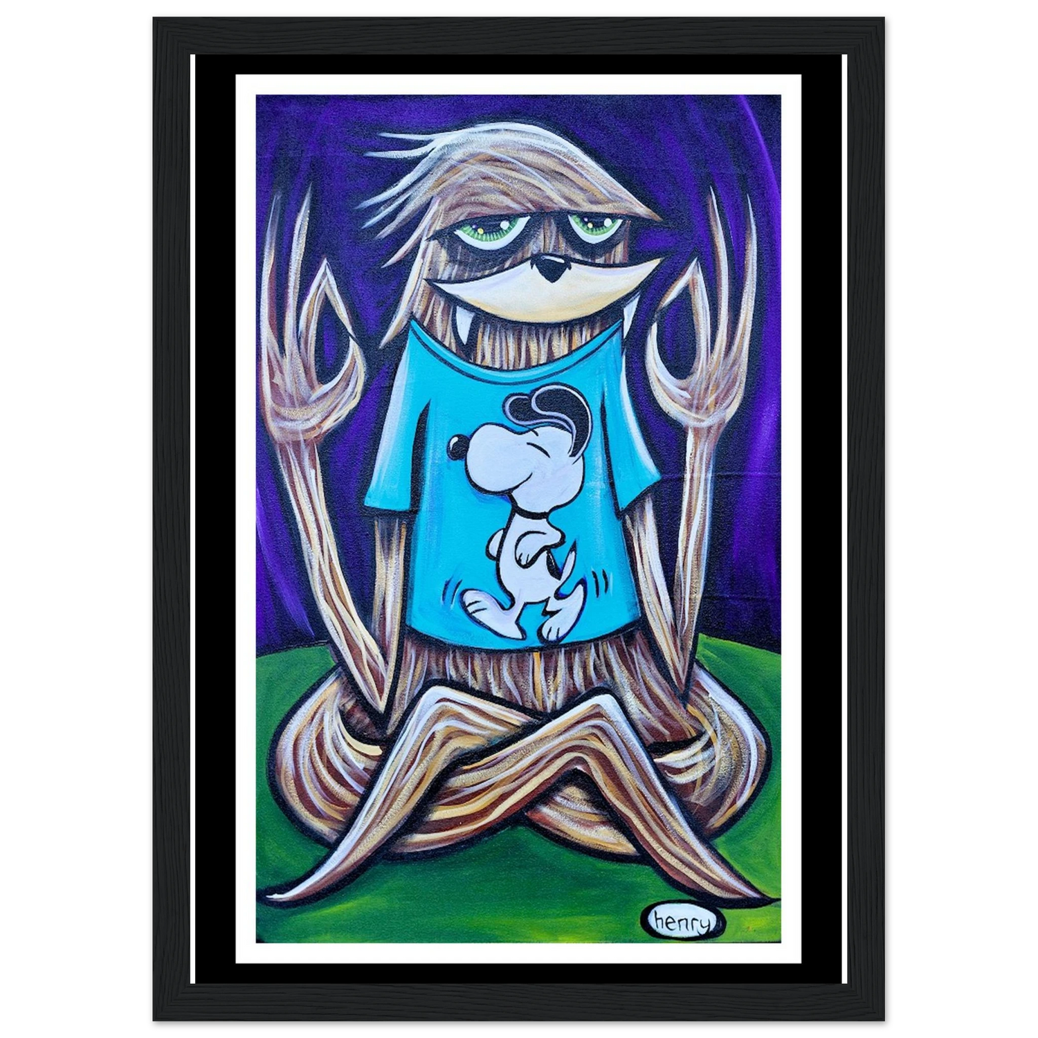 Sasquatch Loves Snoopy - Mounted Framed Poster
