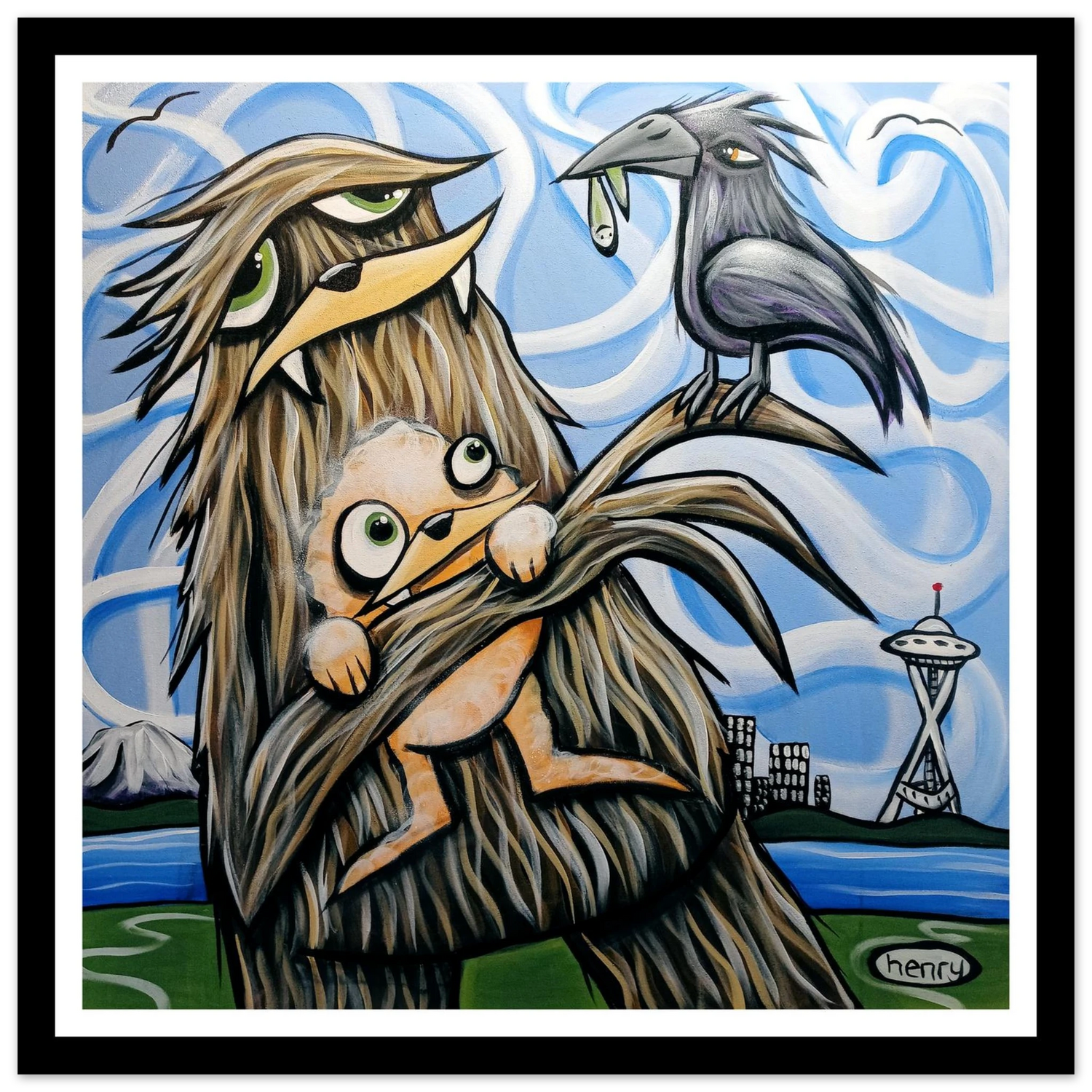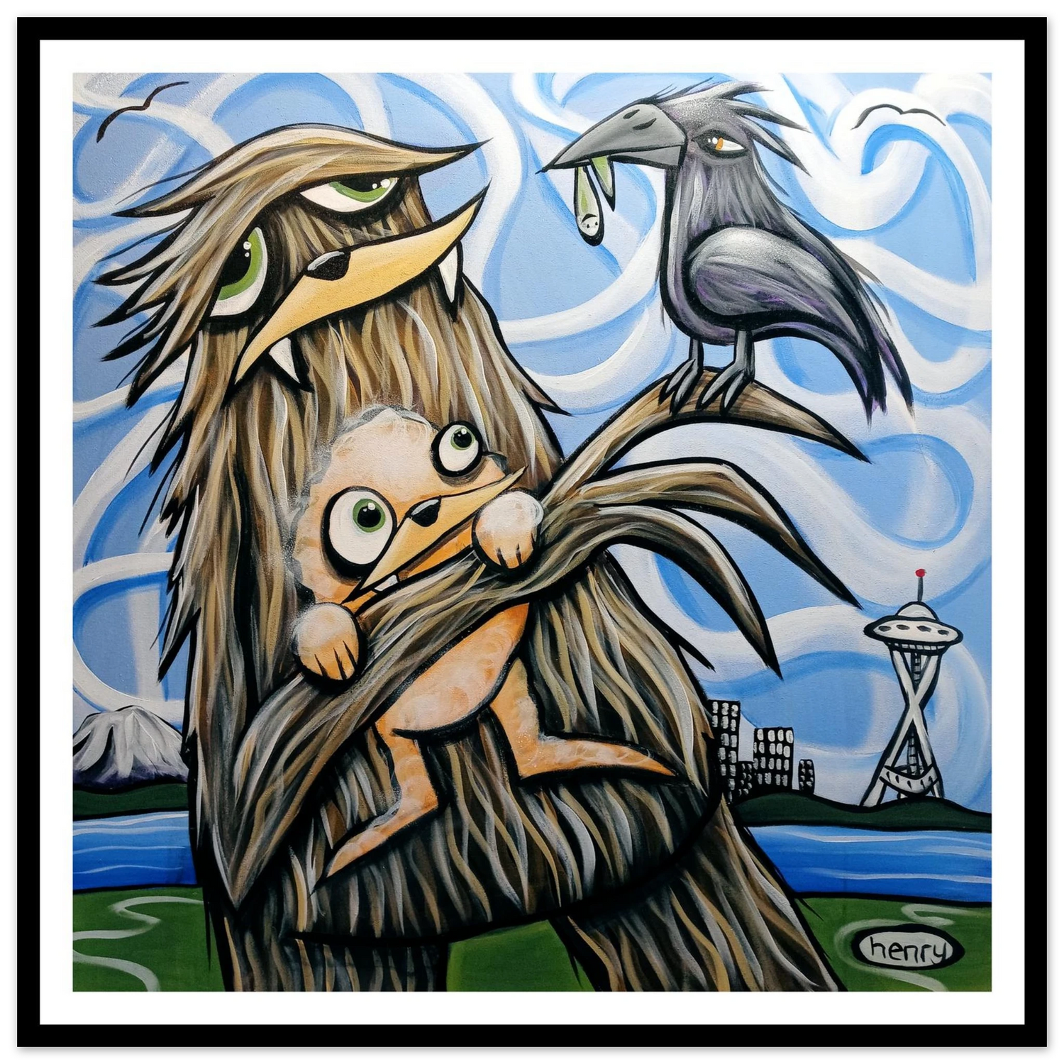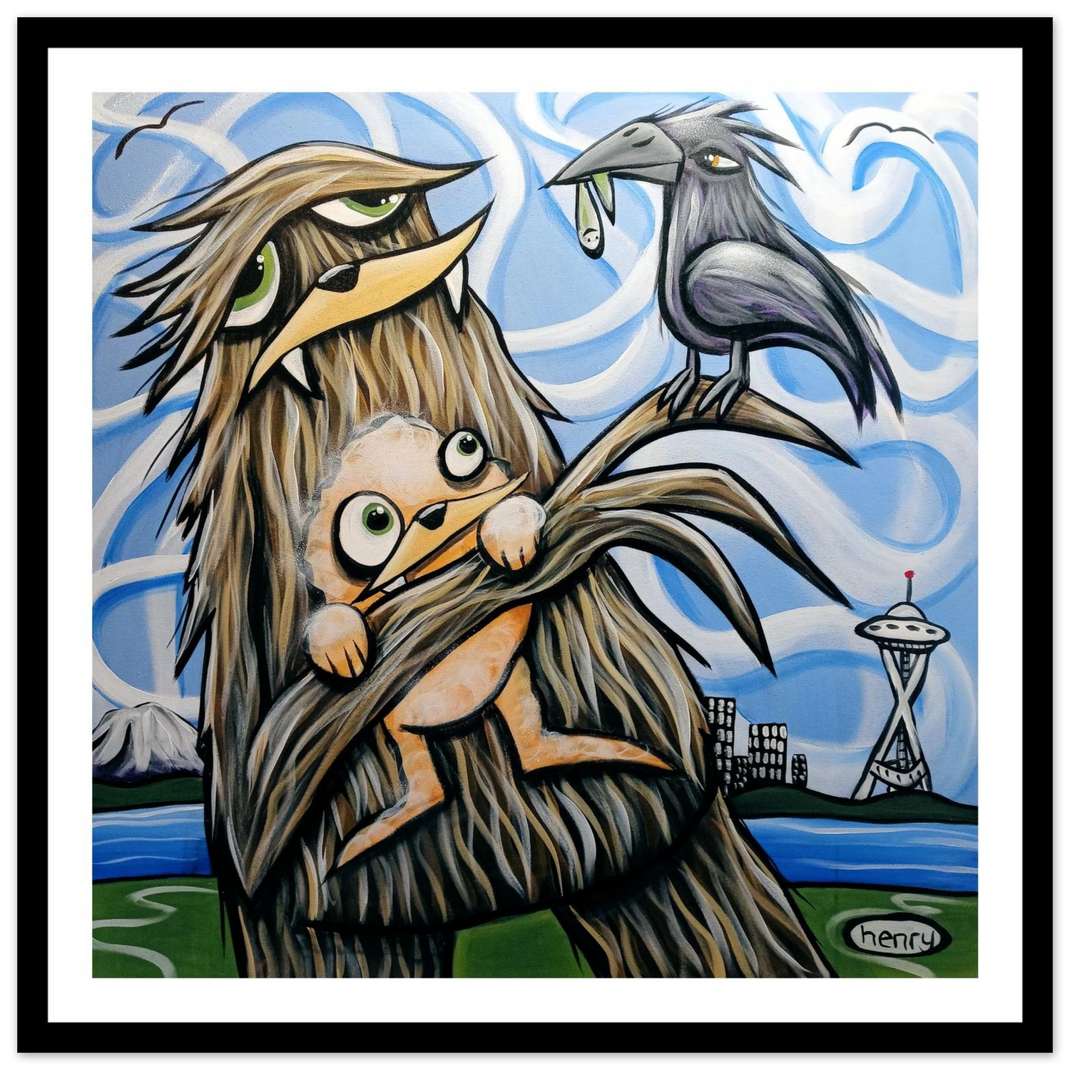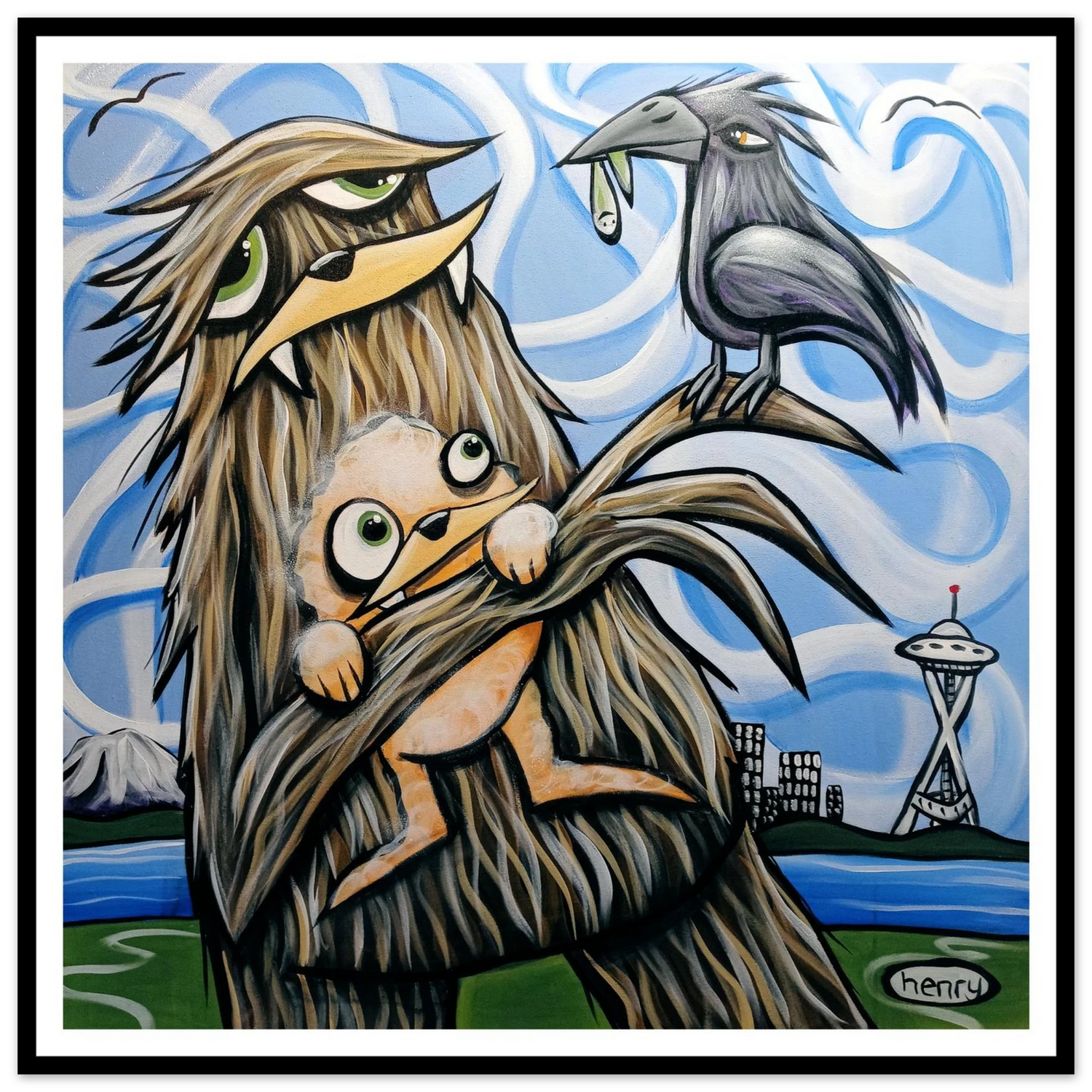 Sasquatch Dad and Hungry Crow - Poster - is backordered and will ship as soon as it is back in stock.