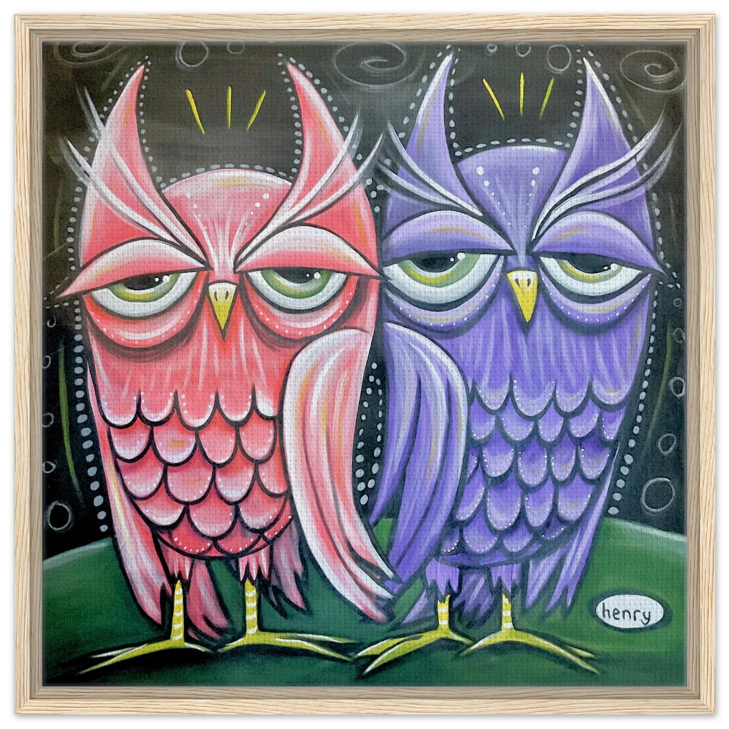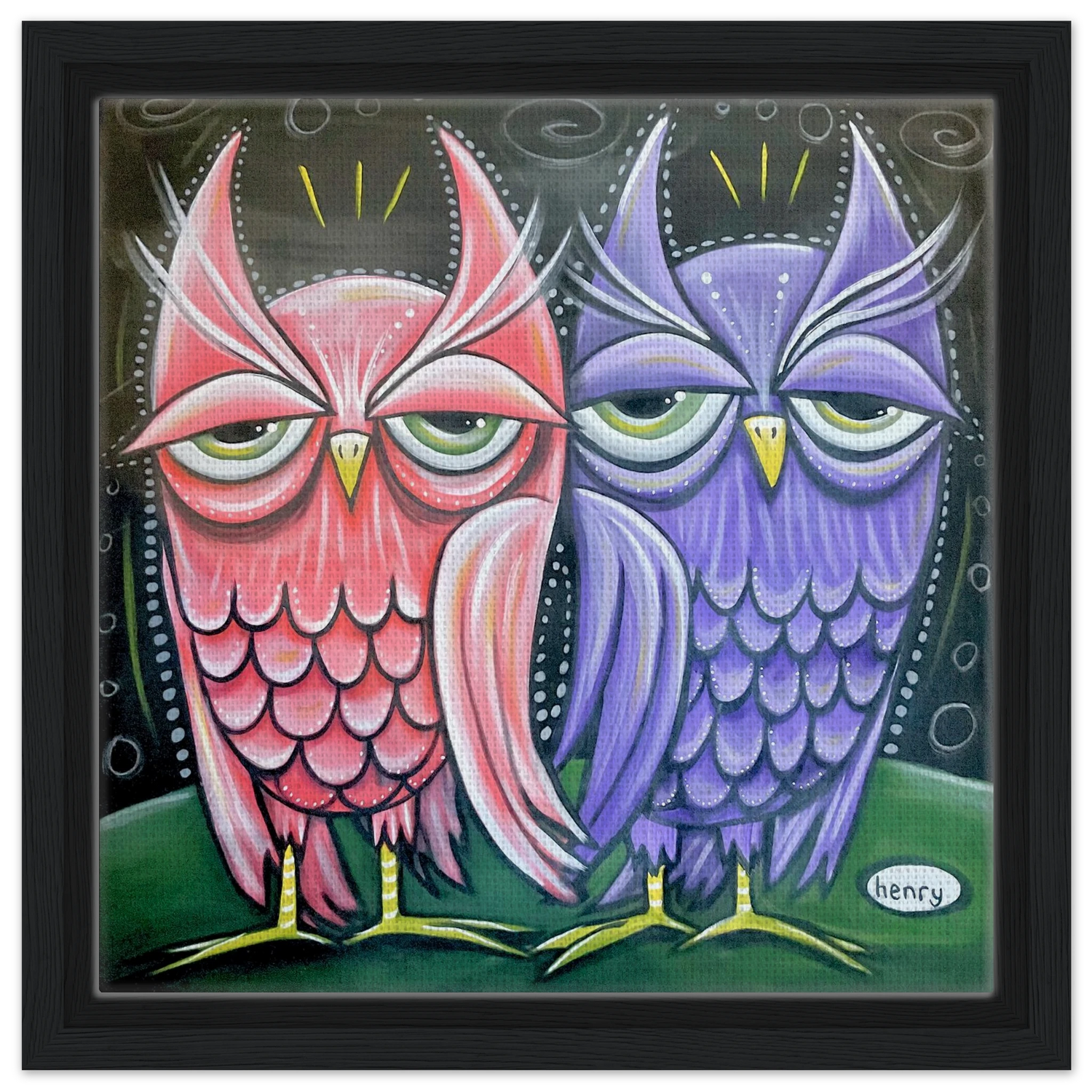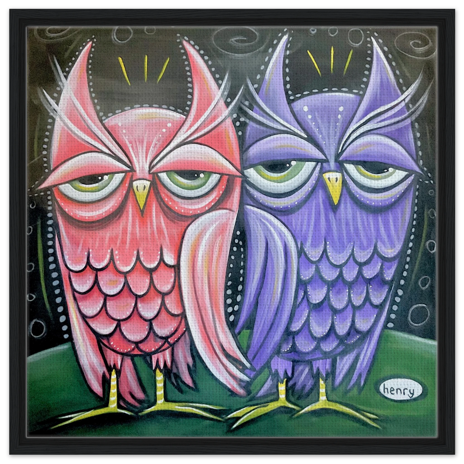 Two Owls - Framed Canvas Print