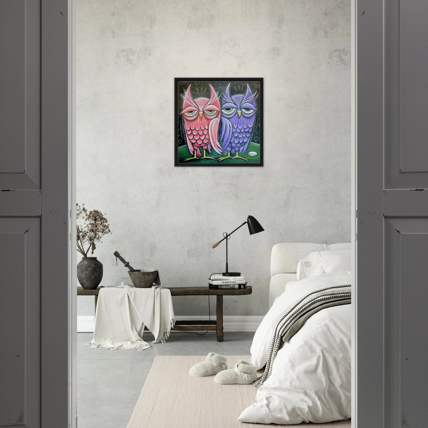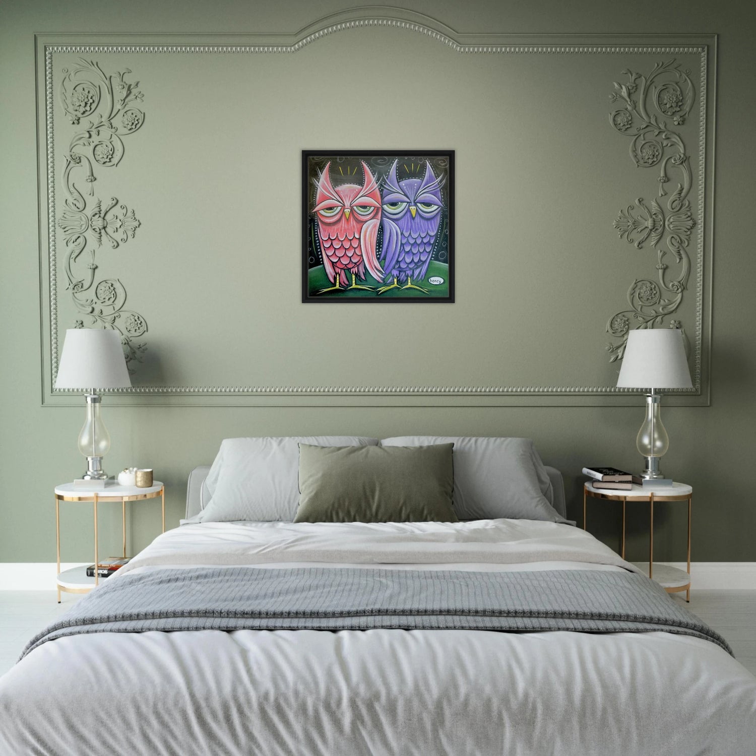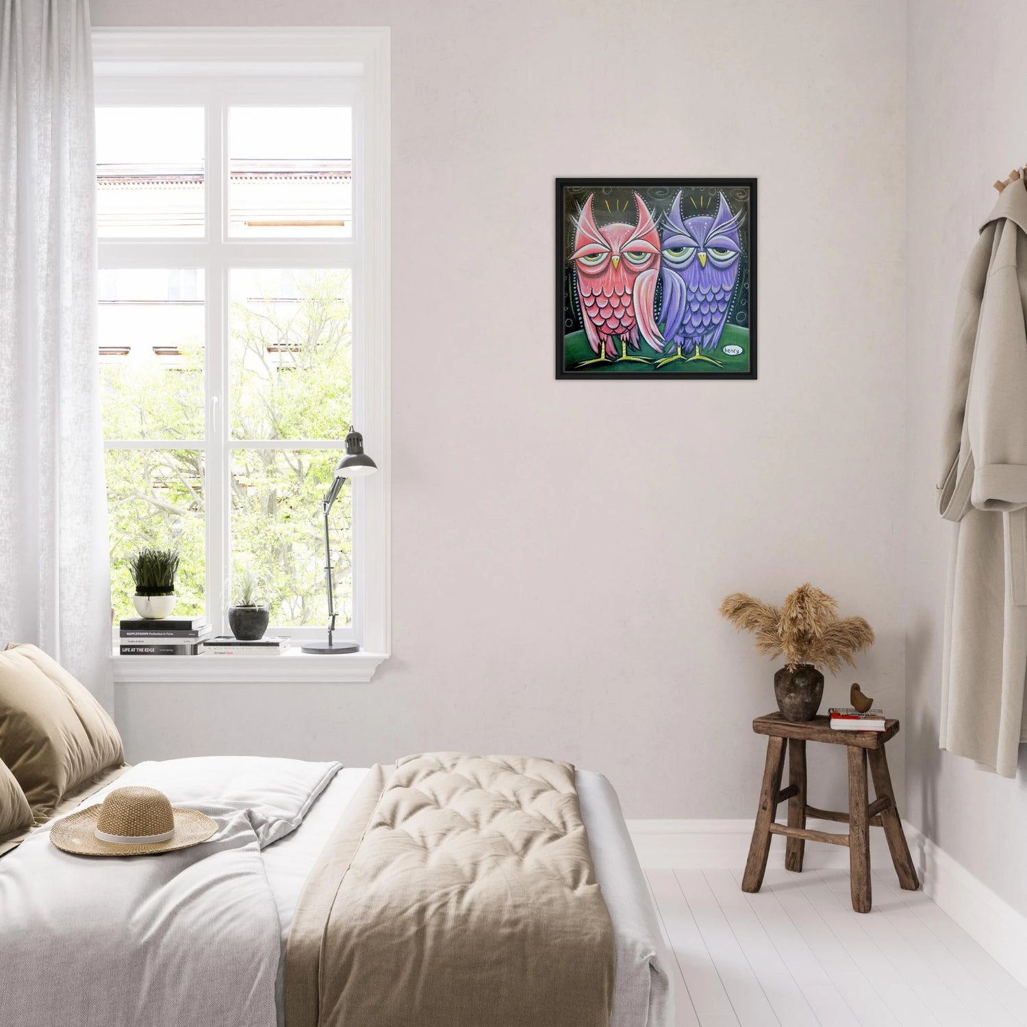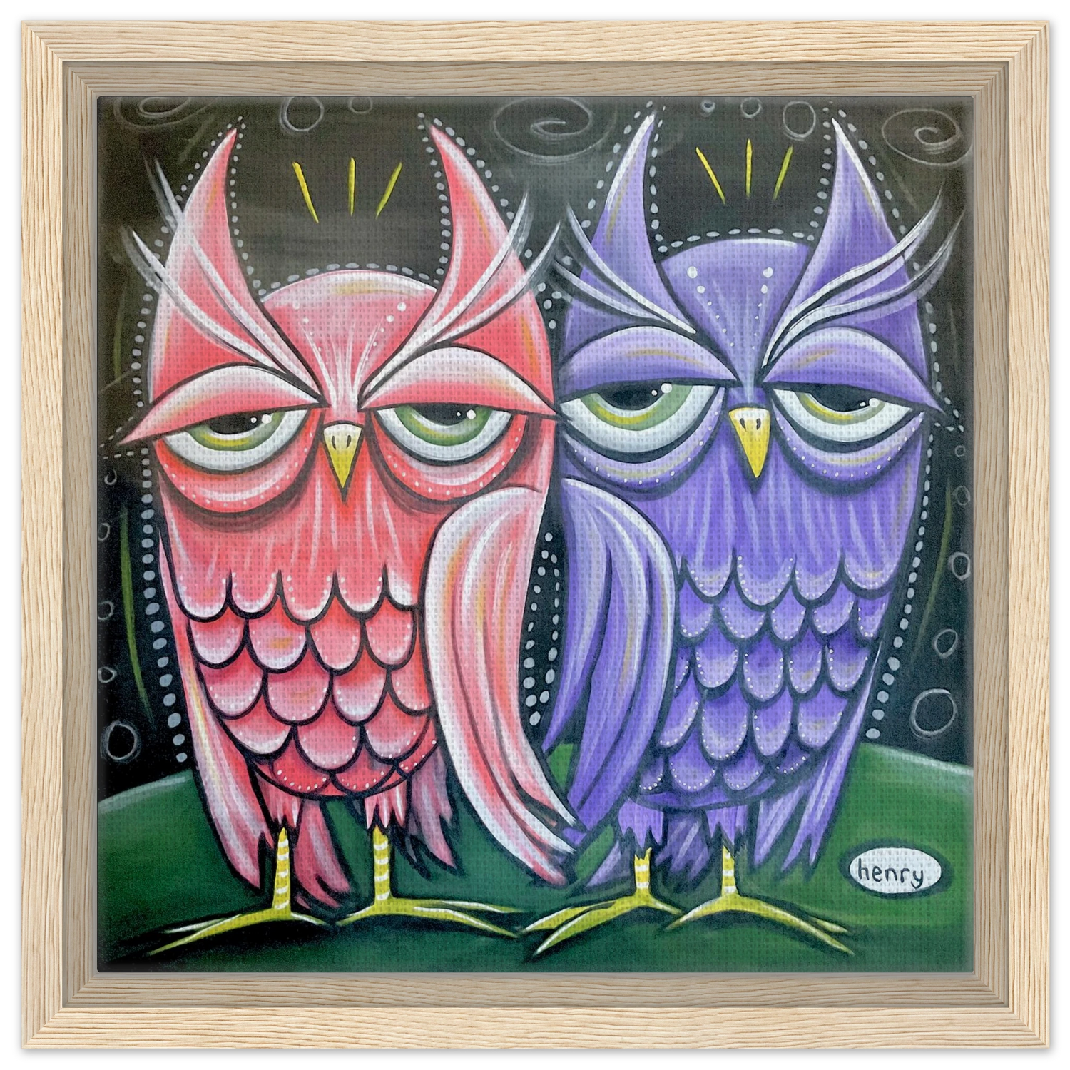 Two Owls - Framed Canvas Print