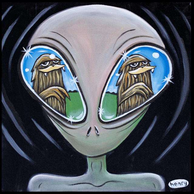 Henry's mysterious artwork will make everyone look twice. Bring of bit of mystery and humor to your home, studio, work room, or office.