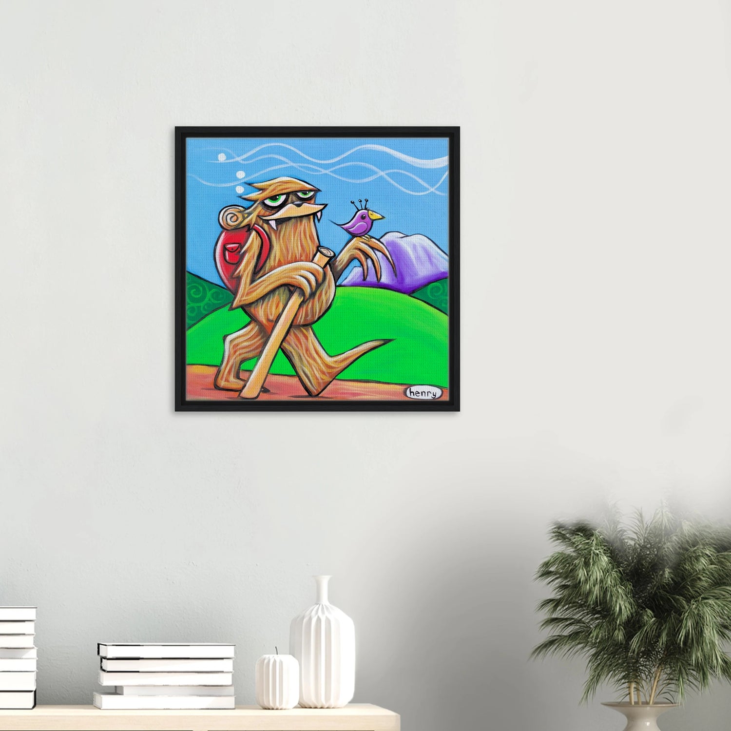 Hiking with Sasquatch - Framed Canvas Print - is backordered and will ship as soon as it is back in stock.