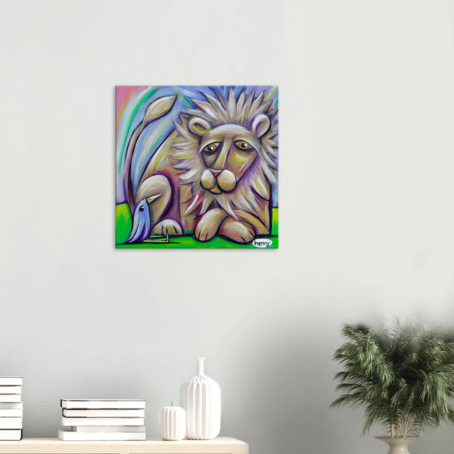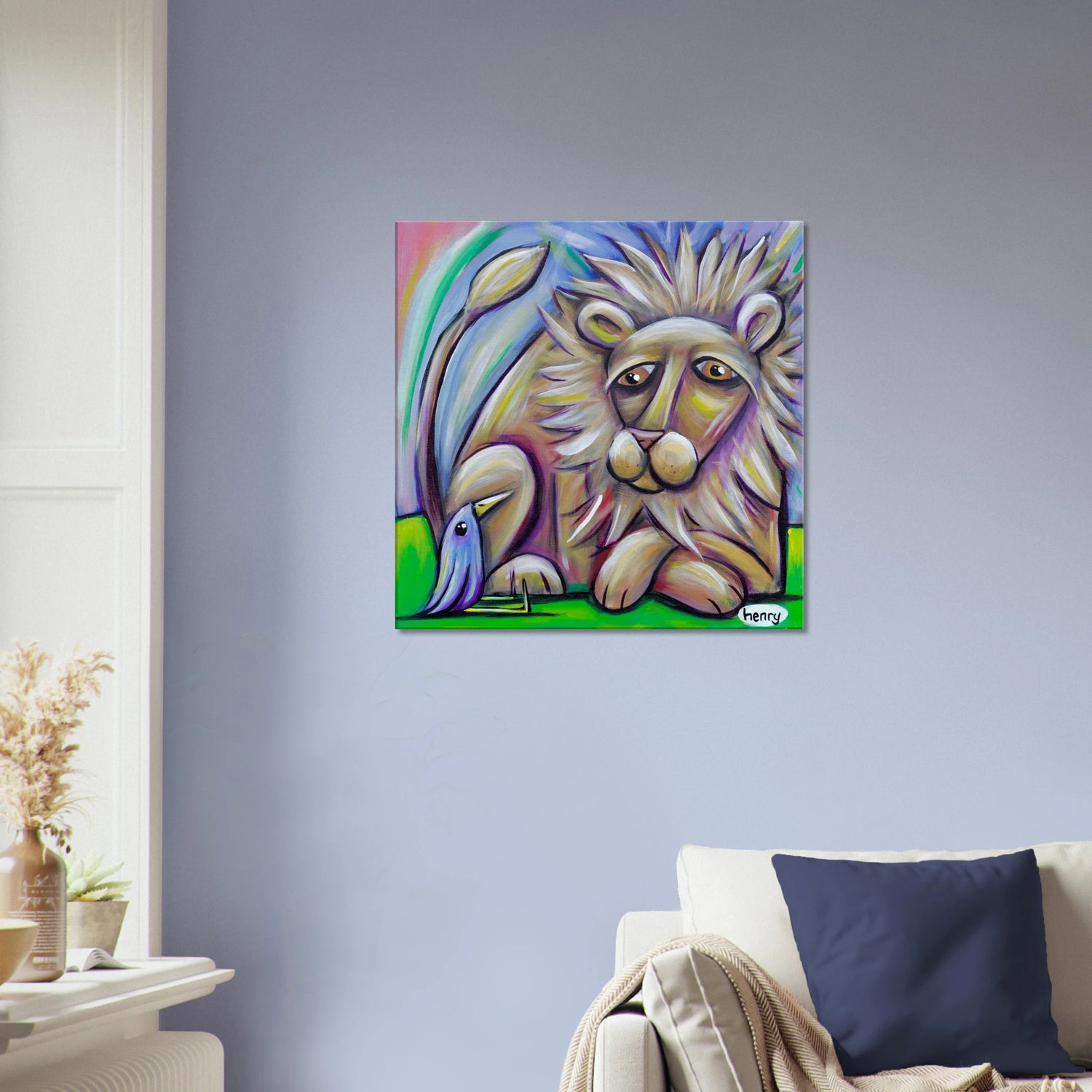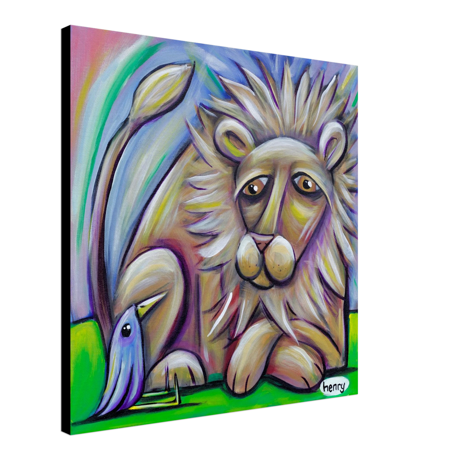Lion and Bird - Canvas Print - is backordered and will ship as soon as it is back in stock.