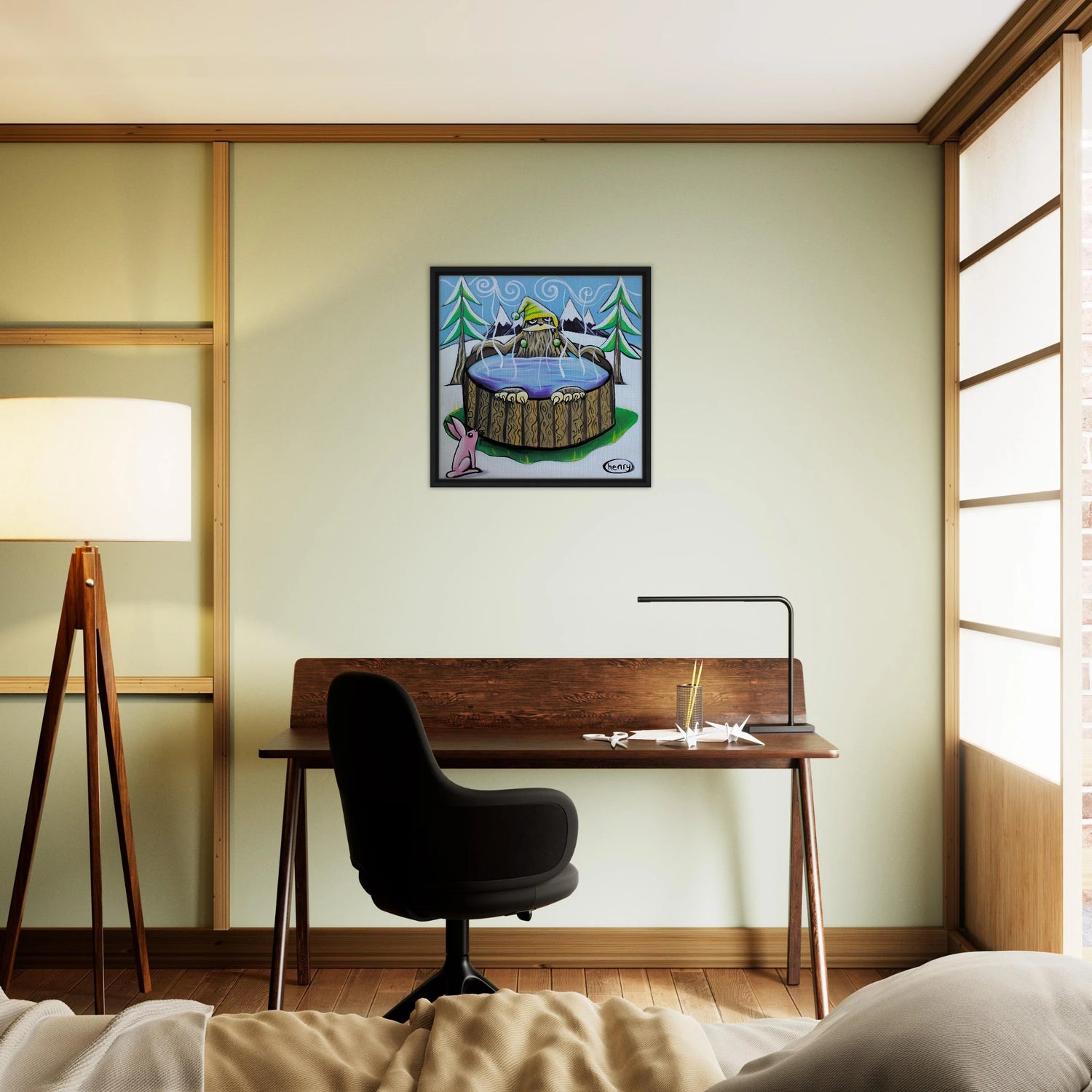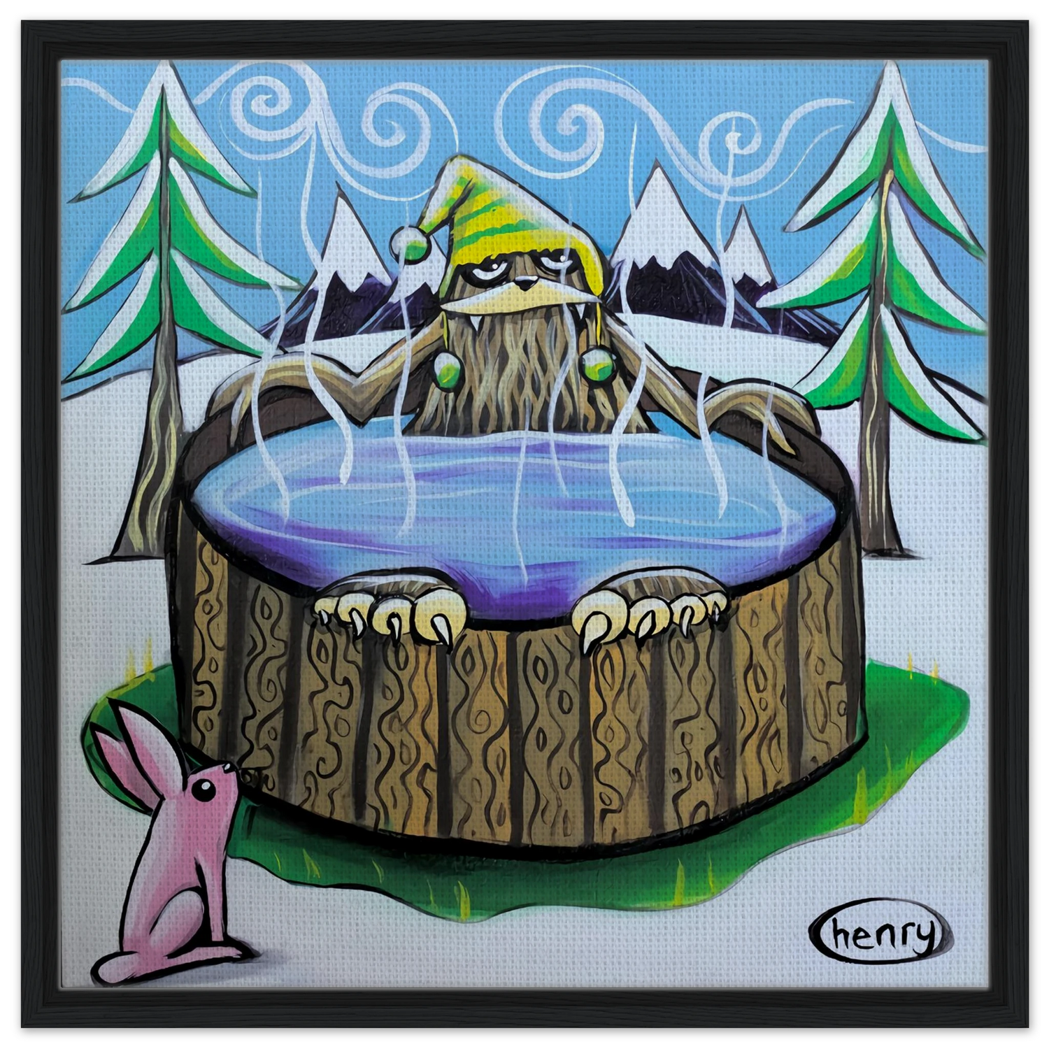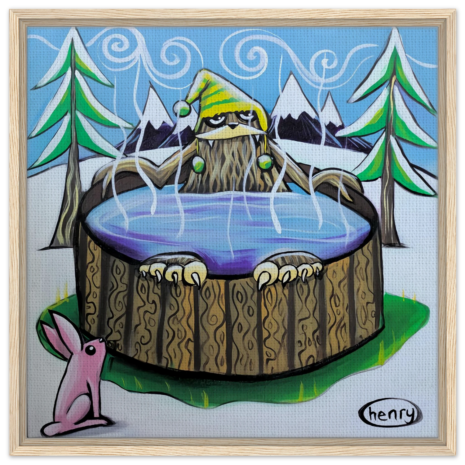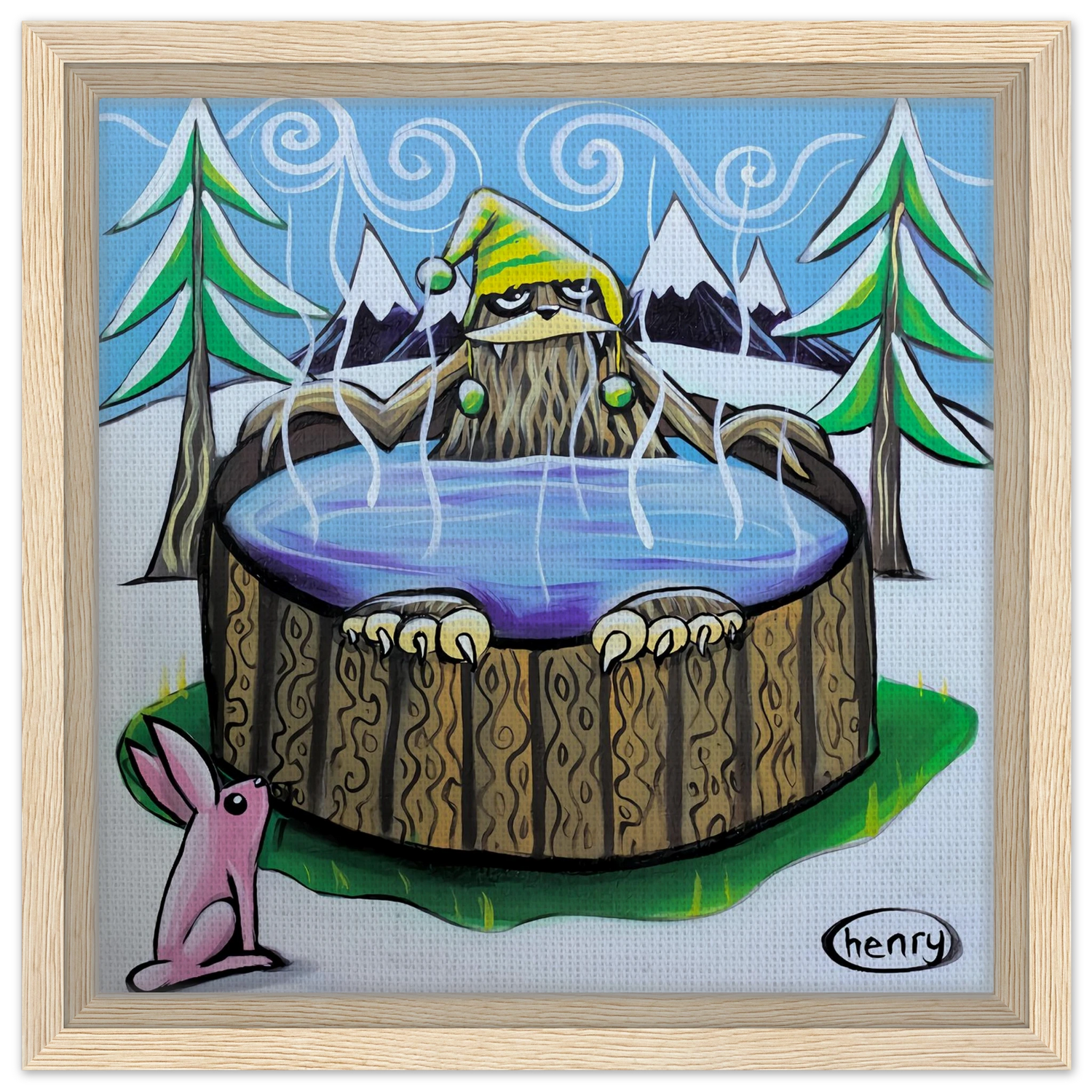 Hot Tub Sasquatch - Framed Canvas Print - is backordered and will ship as soon as it is back in stock.
