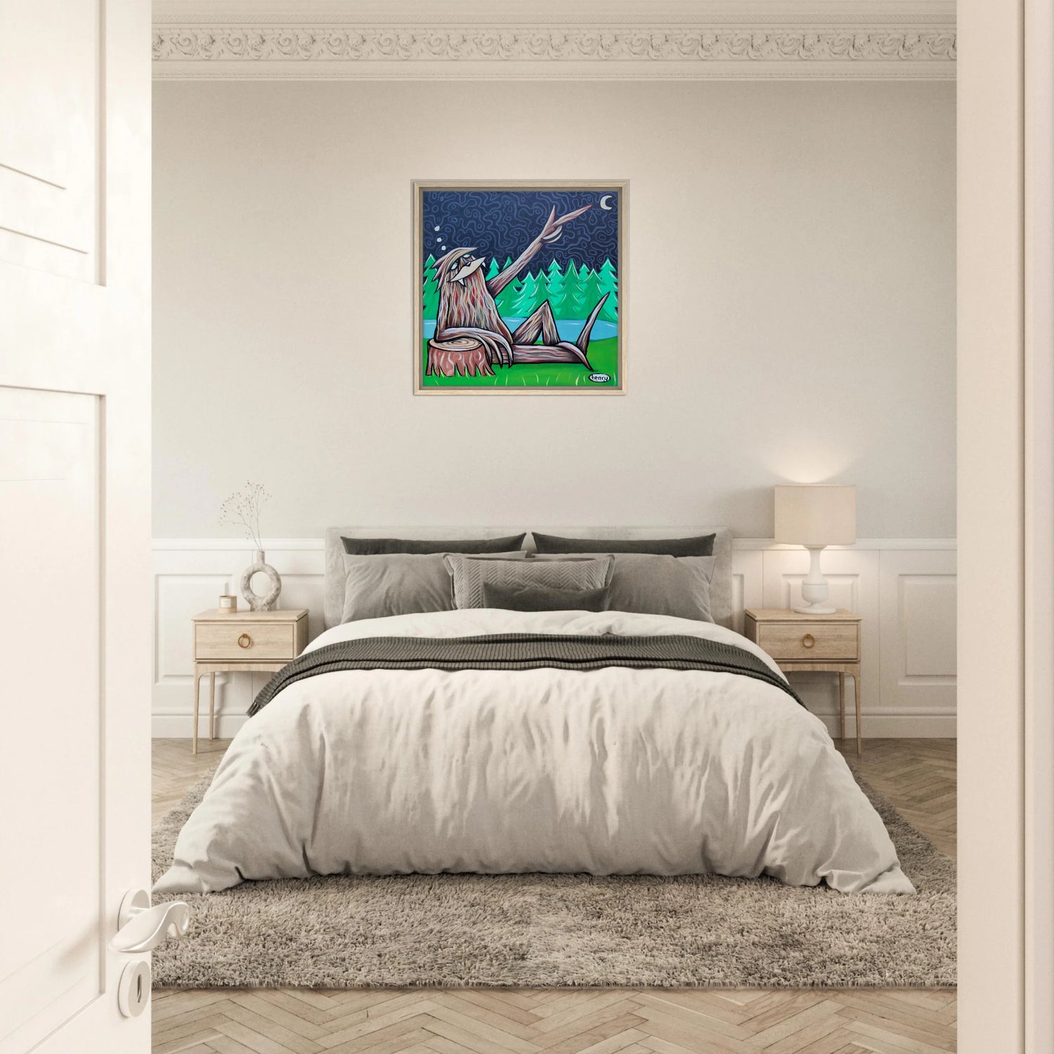 Pointing at the Moon - Framed Canvas Print - is backordered and will ship as soon as it is back in stock.
